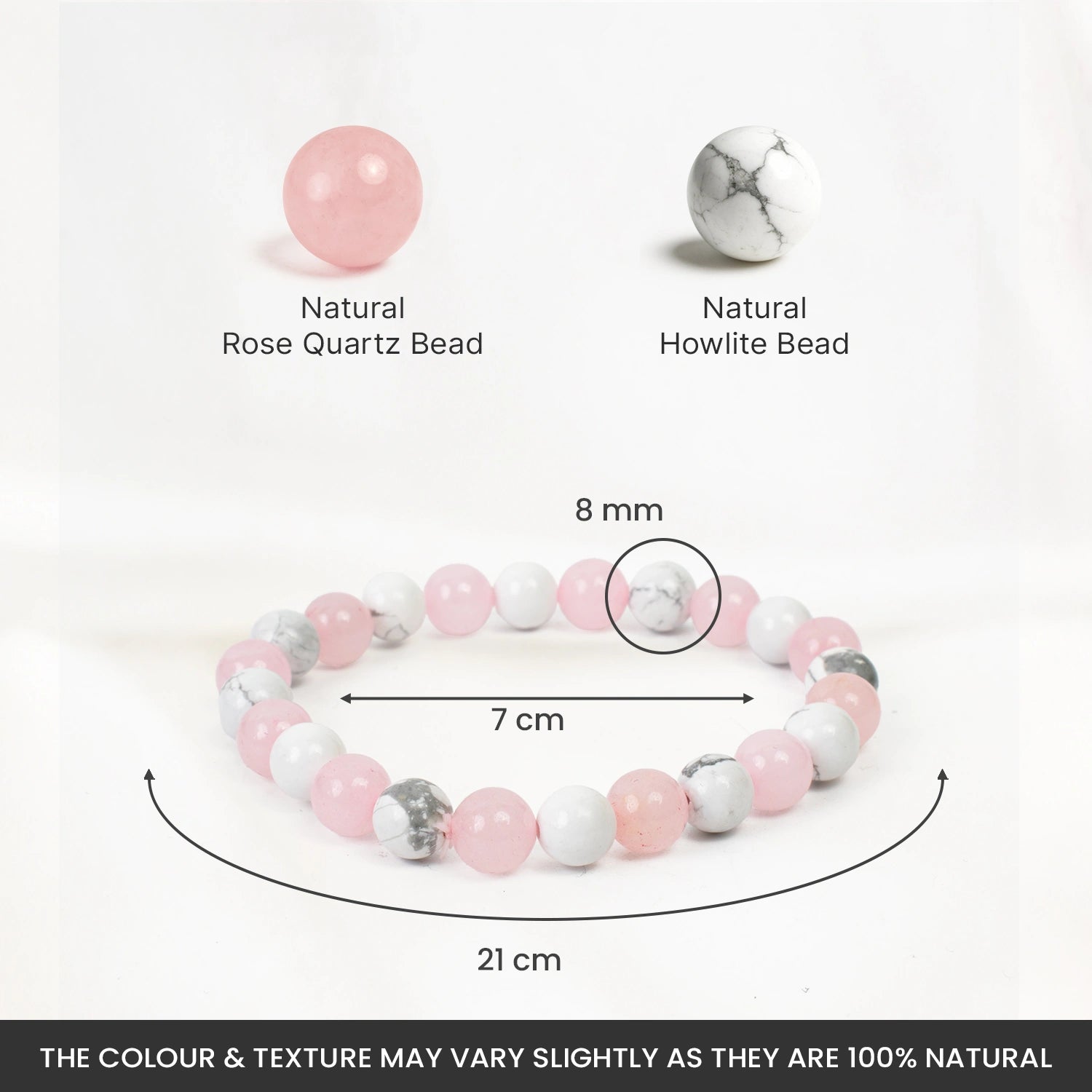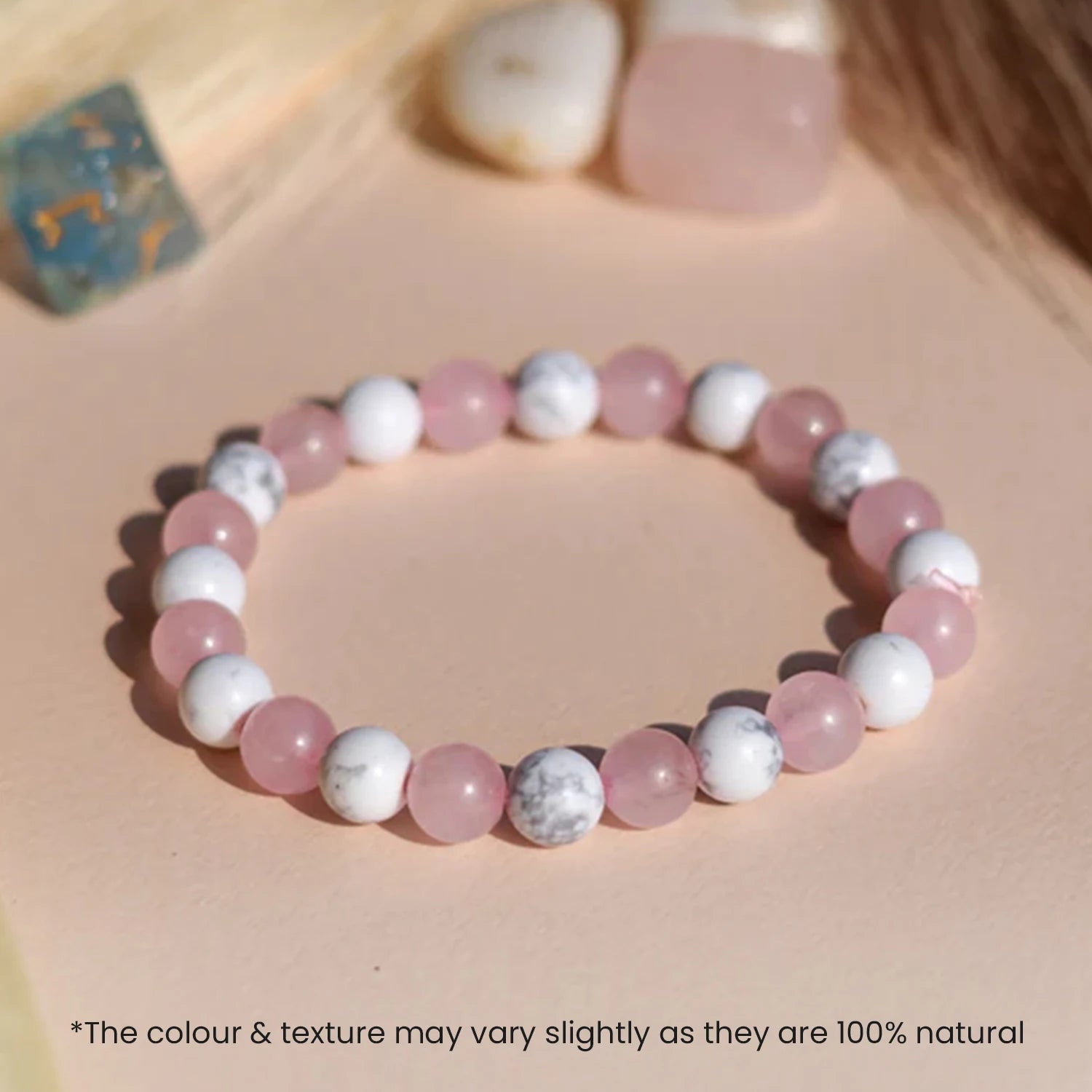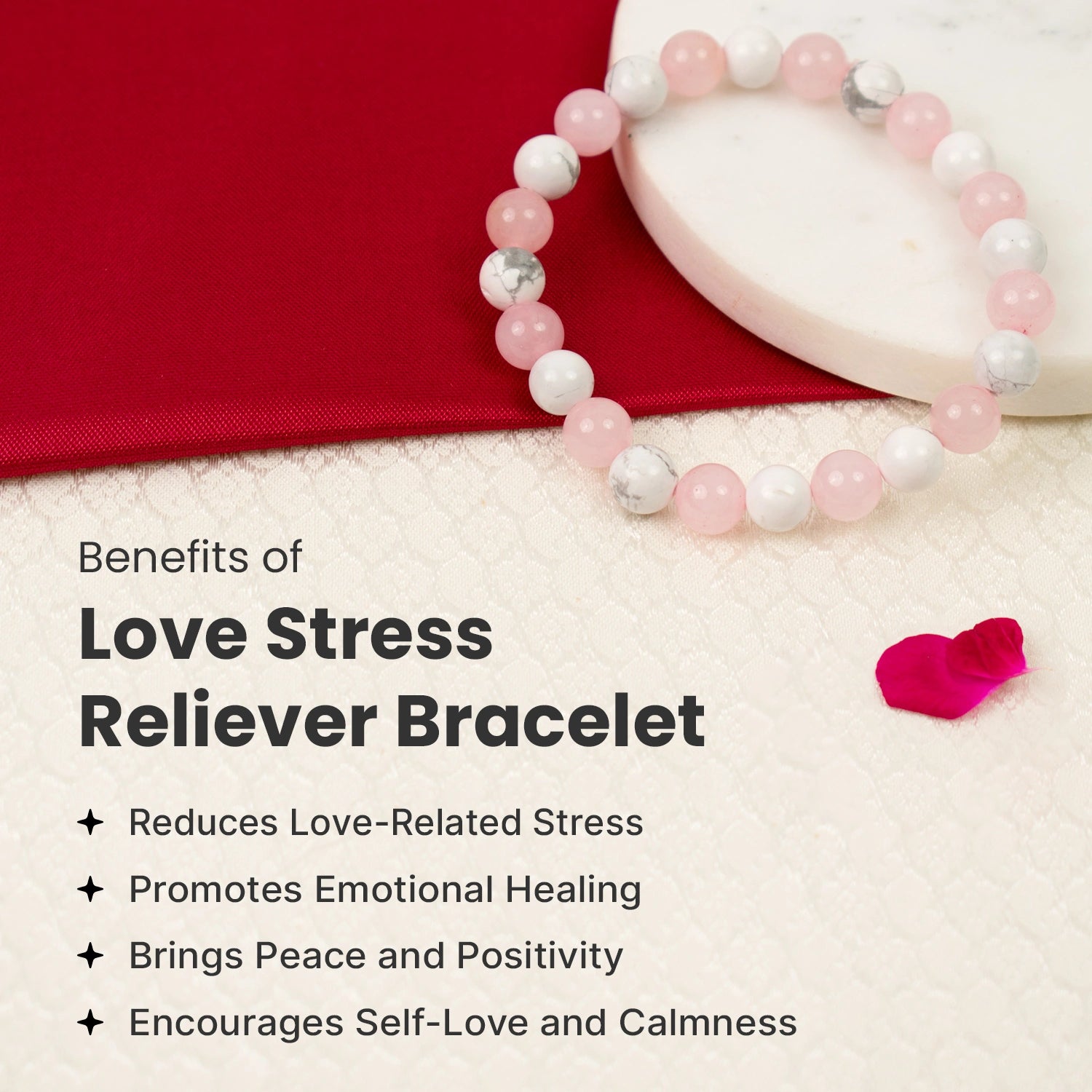 Prepaid orders are delivered on priority.The Love Stress Reliever Bracelet is made with natural Rose Quartz and Howlite crystals, known for their calming and loving energy. Rose Quartz helps open your heart to love, peace, and compassion, while Howlite reduces stress, anger, and negative thoughts.