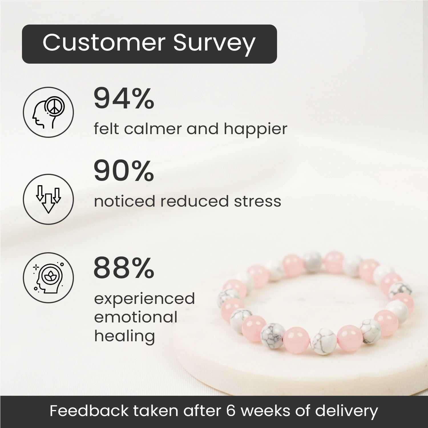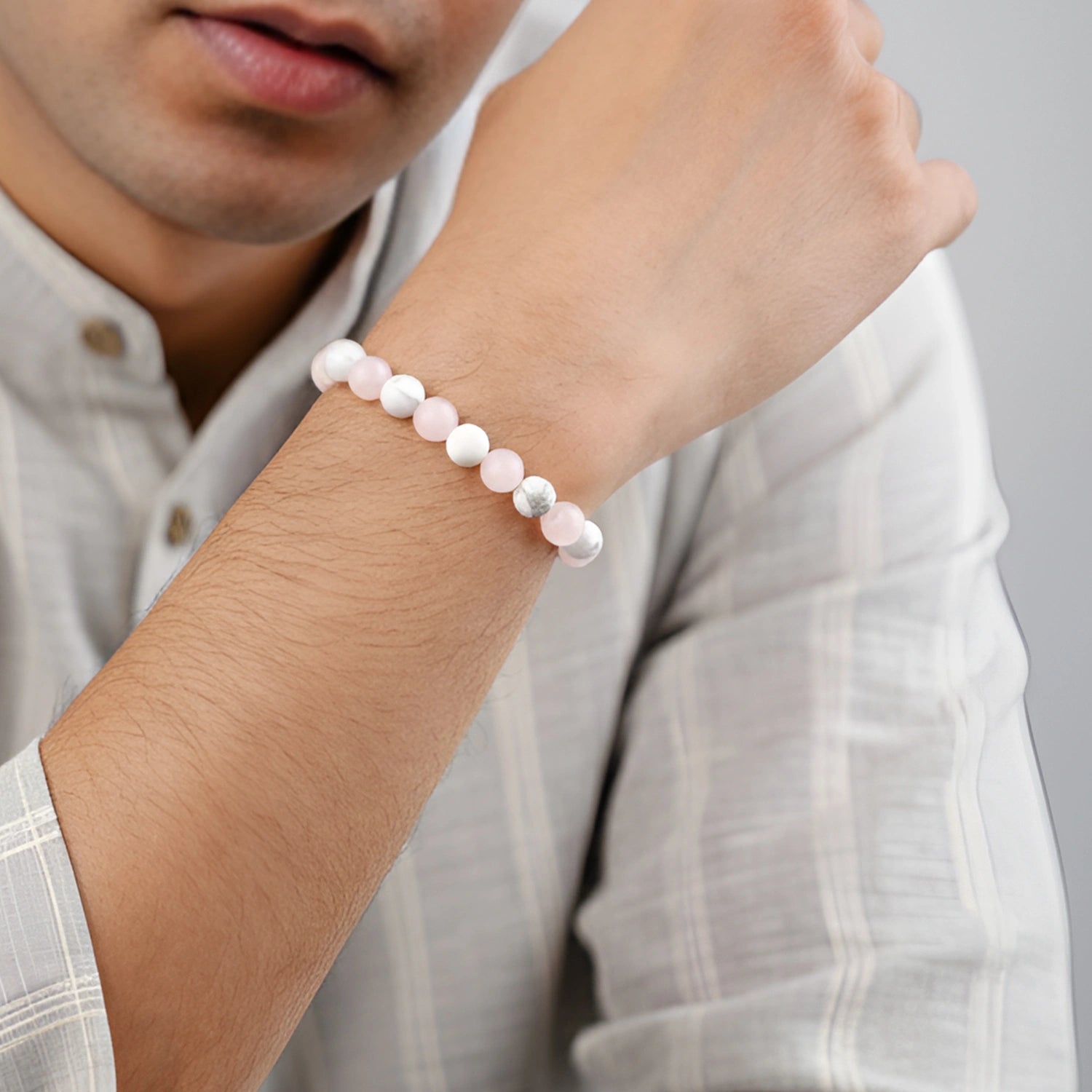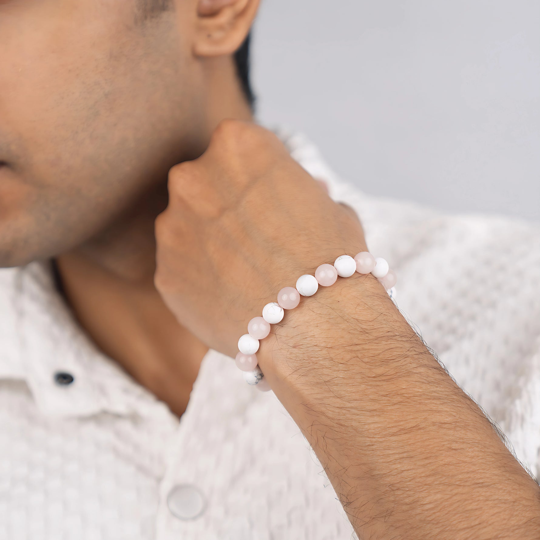 Prepaid orders are delivered on priority.The Love Stress Reliever Bracelet is made with natural Rose Quartz and Howlite crystals, known for their calming and loving energy. Rose Quartz helps open your heart to love, peace, and compassion, while Howlite reduces stress, anger, and negative thoughts.