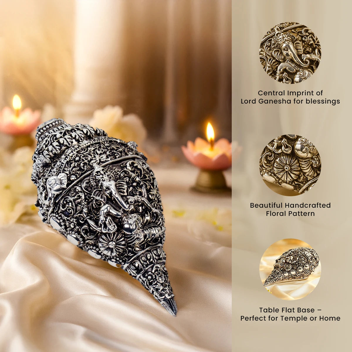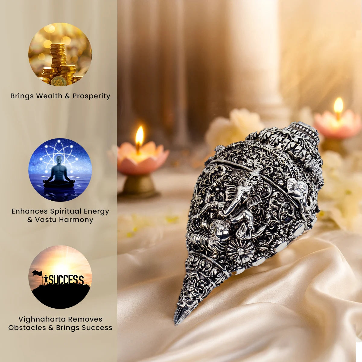 Maa Lakshmi Siddh Silver Plated Ganesh Shankh (Conch)
