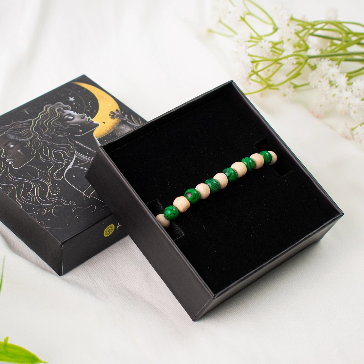 Natural Malachite Stone and Tulsi
