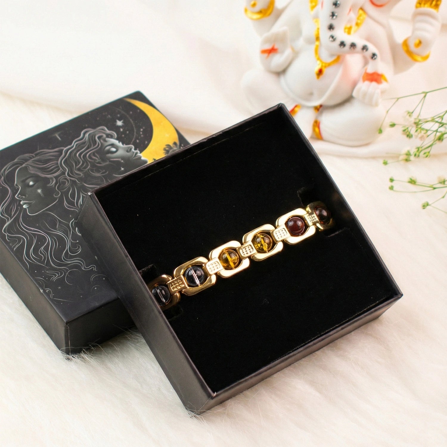 Gift ke liye liya tha par khud pehn liya. Bracelet sundar bhi hai aur paiso ko leke stress kam feel hota hai. Selenite plate se cleanse karna easy hai, overall very satisfied.