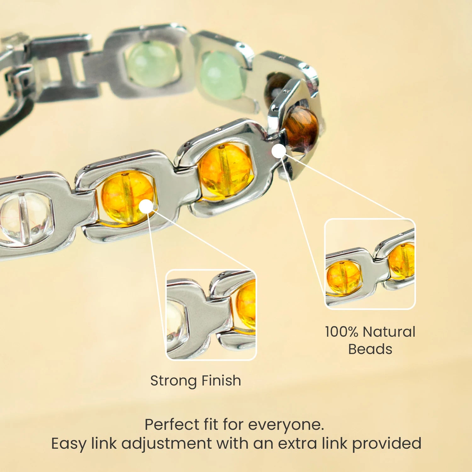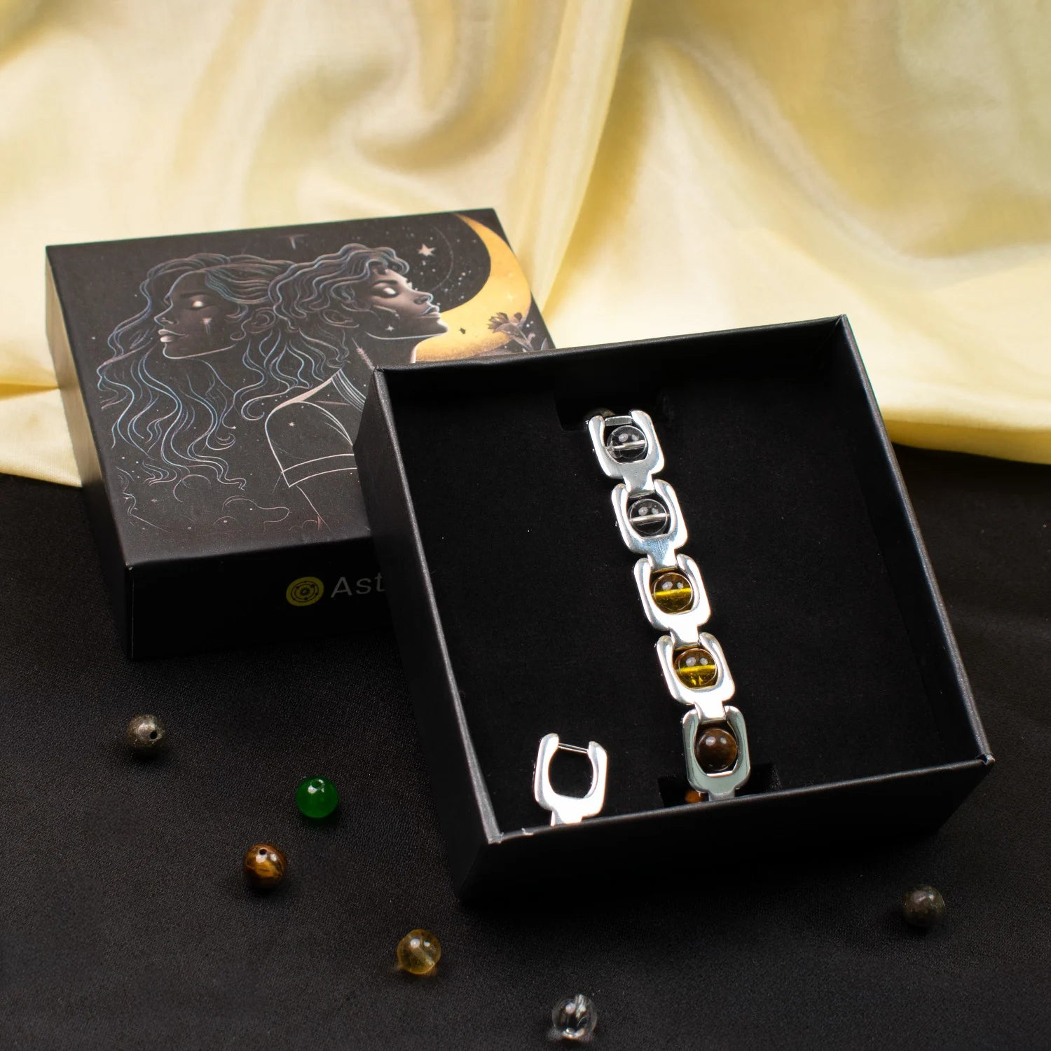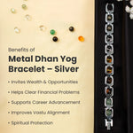 Dhan Yog Silver BraceletThe Metal Dhan Yog Bracelet – Silver is designed to bring samriddhi (prosperity), financial luck and positive energy. Silver is known to amplify the vibrations of prosperity stones while providing elegance. According to Vedic Astrology, this powerful bracelet is believed to activate Dhan Yog—a rare planetary combination that attracts wealth, success, and abundance.