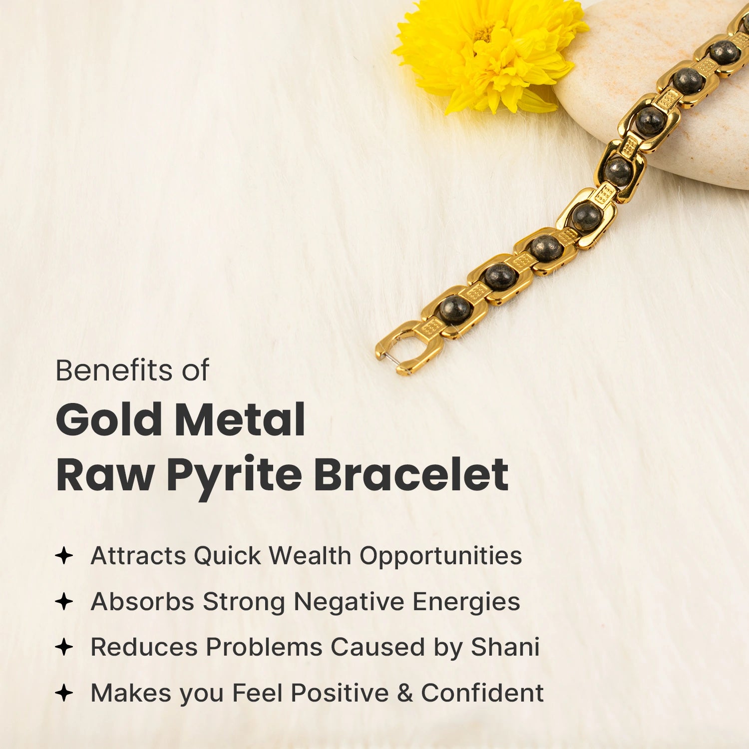 The Metal Raw Pyrite Bracelet – Gold is made for those who want strong money energy with a touch of elegance. Pyrite is known as a powerful money magnet that attracts wealth, success, and abundance. It also supports confidence, willpower, and clear decision-making.