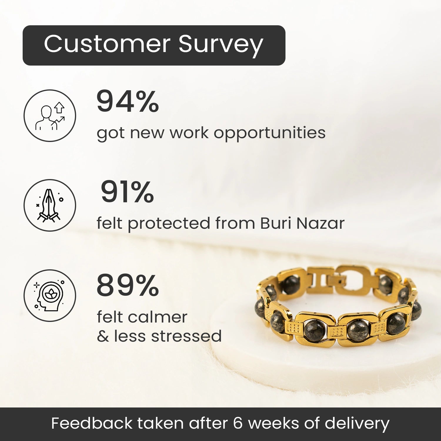 Gold finish ka look kaafi premium lagta hai. Pyrite bracelet pehnne ke baad confidence aur work focus dono improve hue.