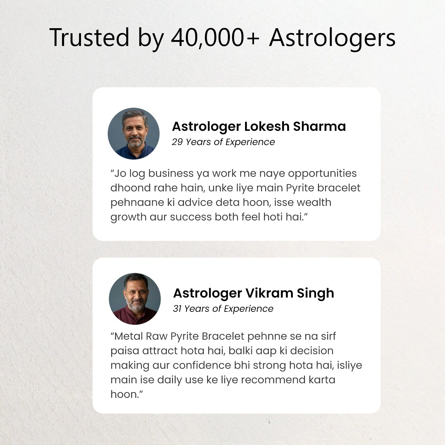 Thursday is ruled by Guru (Jupiter), the planet of wealth, growth, wisdom, and abundance. Wearing Pyrite on this day supports money attraction, career growth, and positive opportunities.