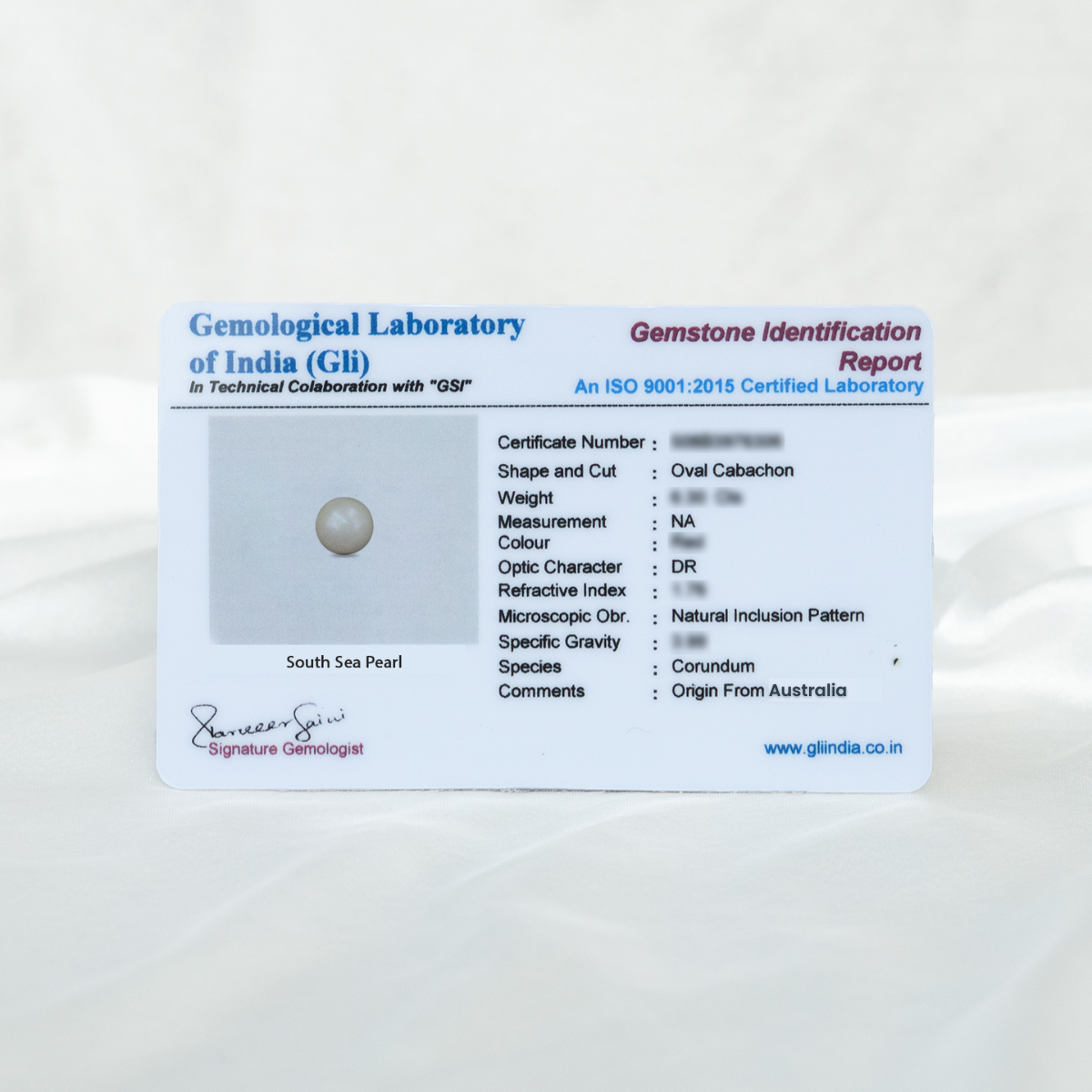 Certified by Reputed Gem Labs