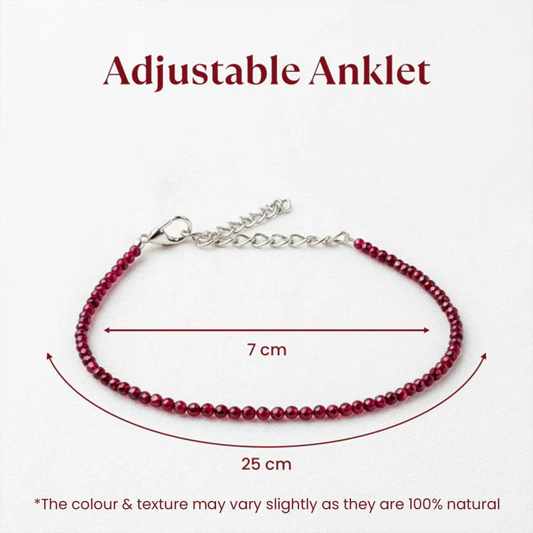 - Garnet Anklet: The “Stone of Passion and Confidence” that adds strength, stability, and protection to your relationships, helping them grow deeper and stronger.