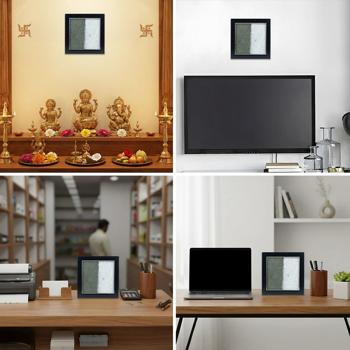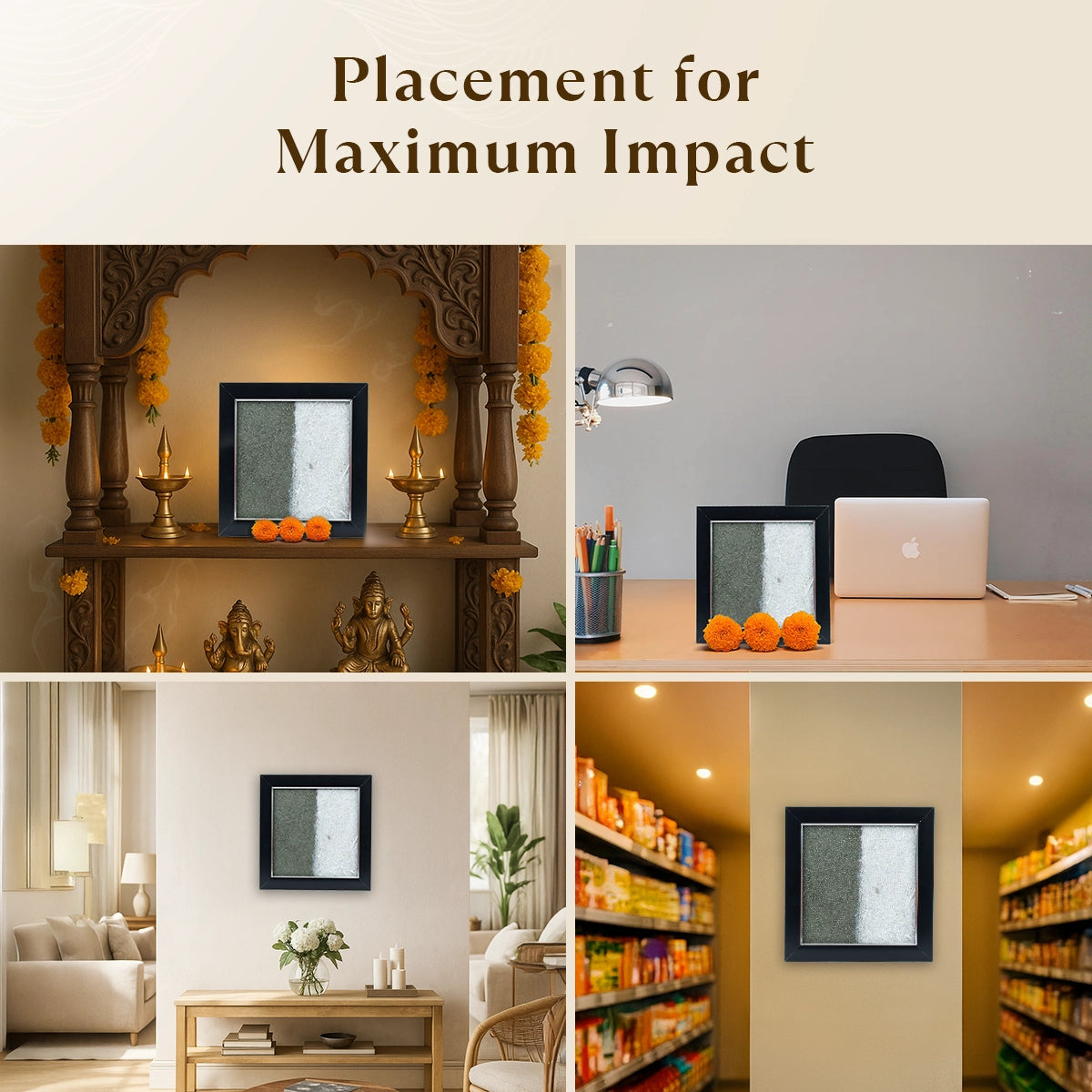 Prepaid orders are delivered on priority.The Dhan Varsha Frame with Peru Pyrite and Selenite Dust is a beautiful and powerful charm for wealth, positivity, and protection. Pyrite, known as the “stone of money,” attracts wealth, business growth, and good fortune. Selenite is a pure white crystal that brings peace, clears negative energy, and keeps the mind calm. Together, Pyrite and Selenite create the perfect balance of prosperity and harmony, making this frame ideal for homes, offices, or shops to invite success, protection, and good energy.