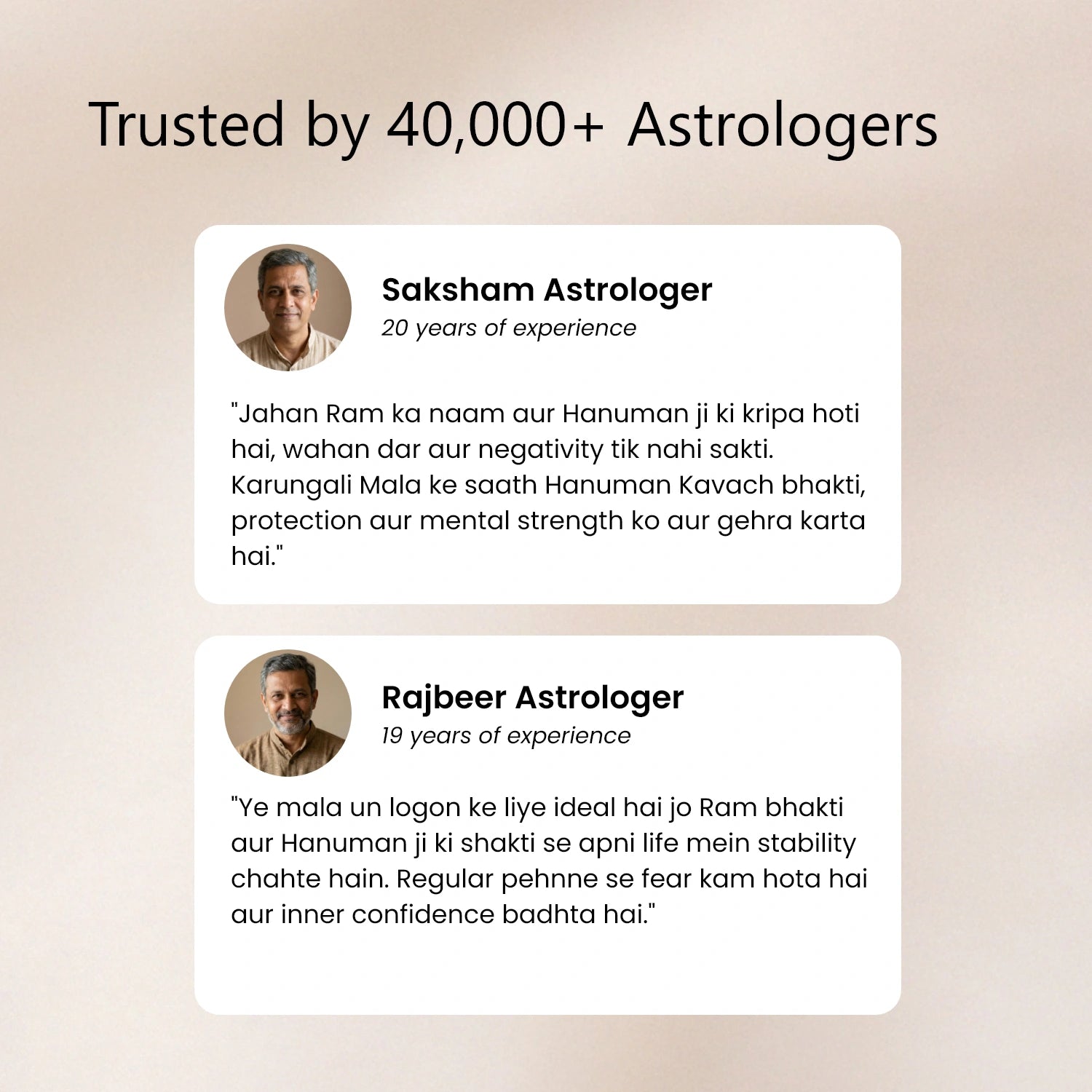 For generations, Karungali wood has been used for protection due to its grounding nature and calming energy, while Hanuman Kavach has been worn as a symbol of courage, determination, and protection.