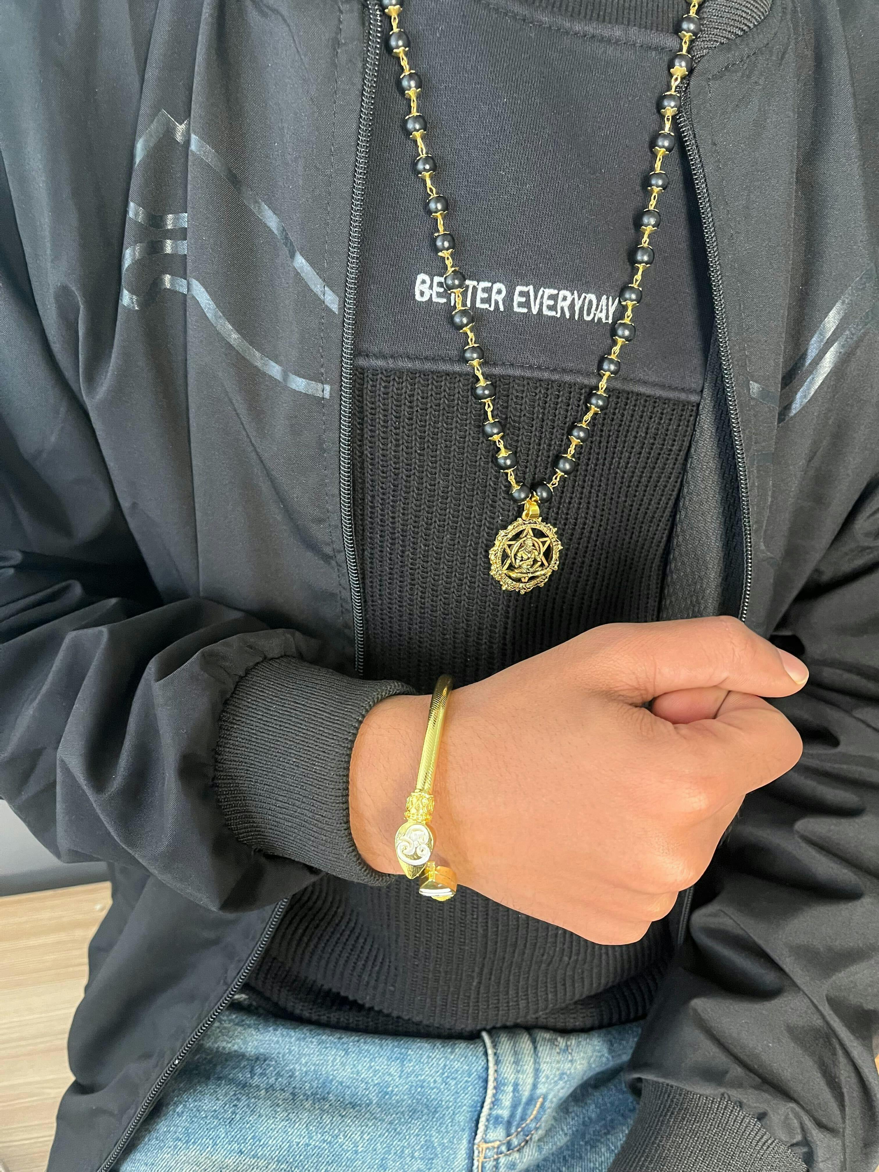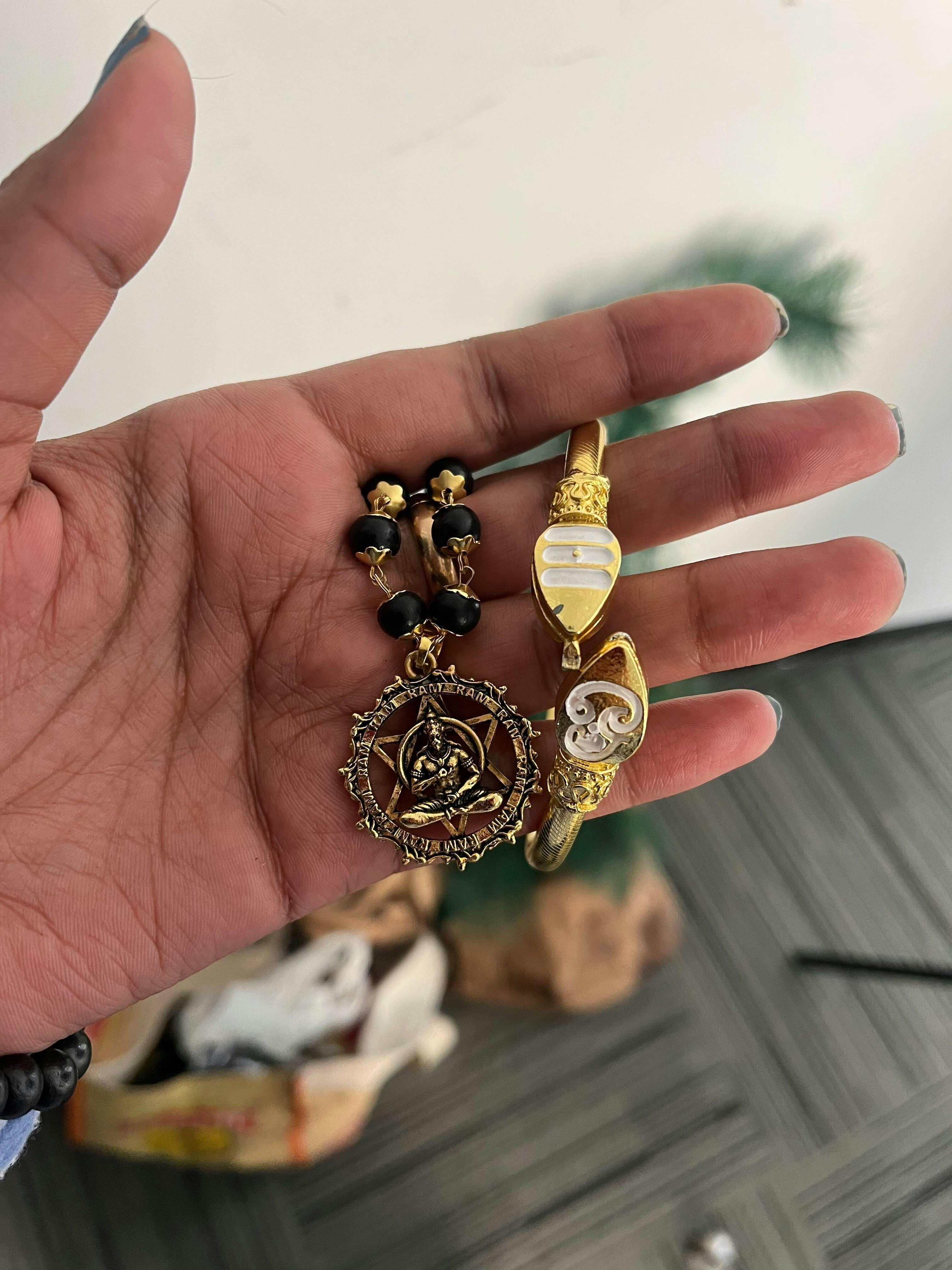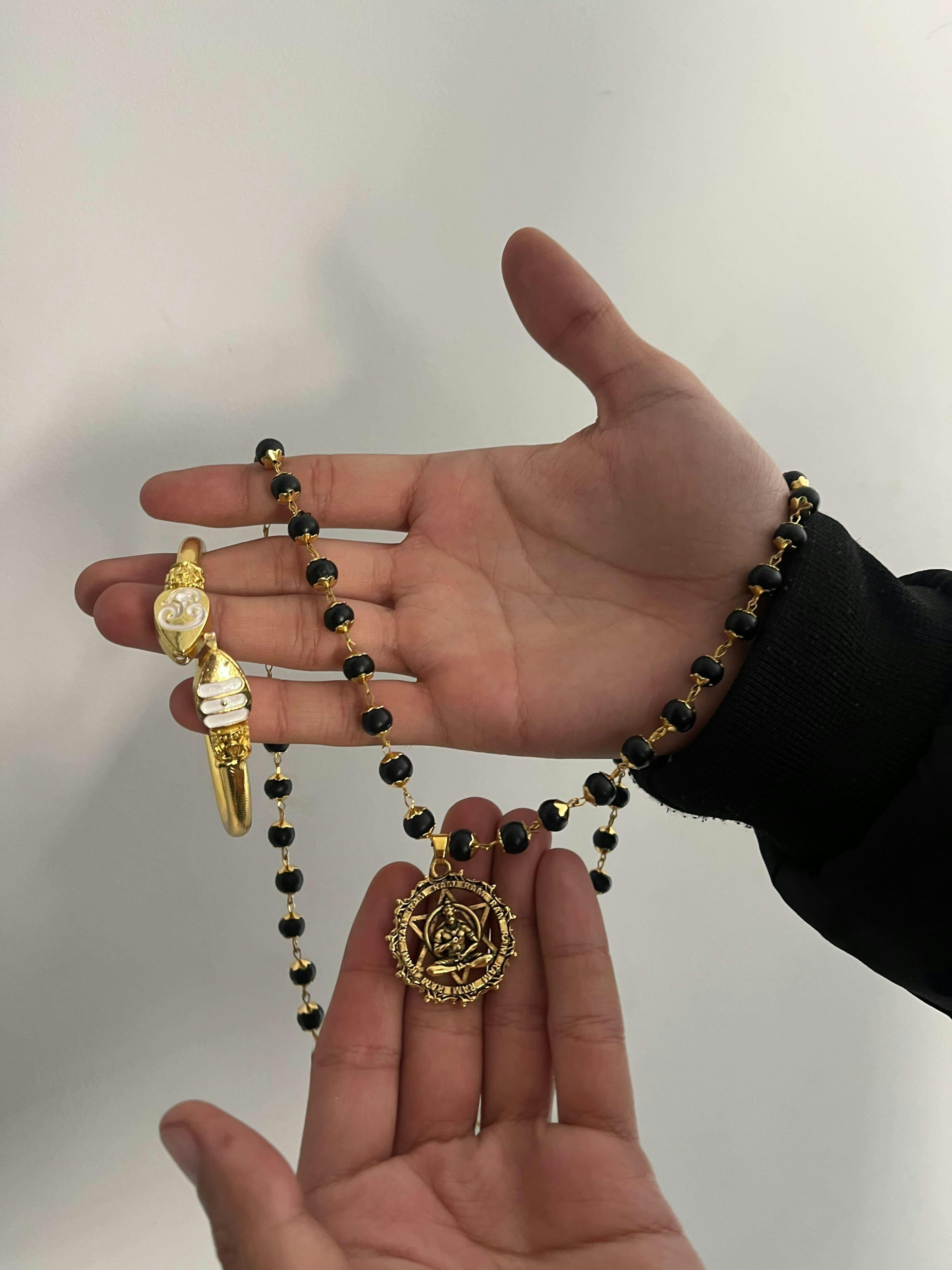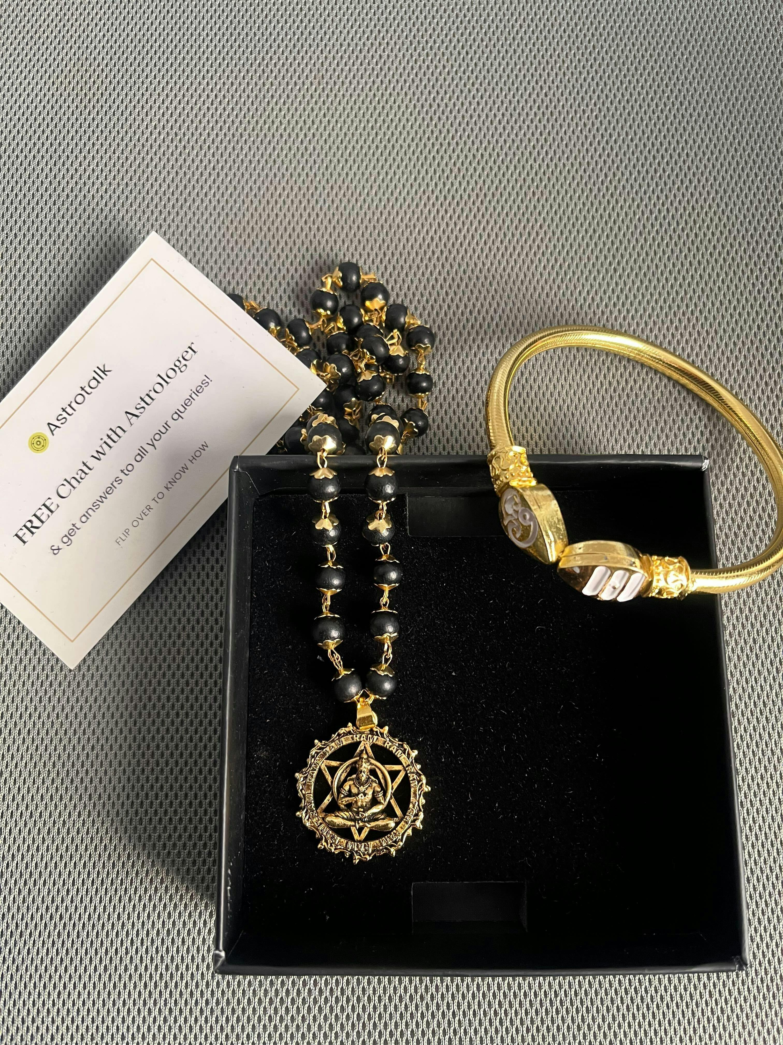 Power & Protection Combo | Karungali Mala with Hanuman Kavach & Gold Plated Vel Kada