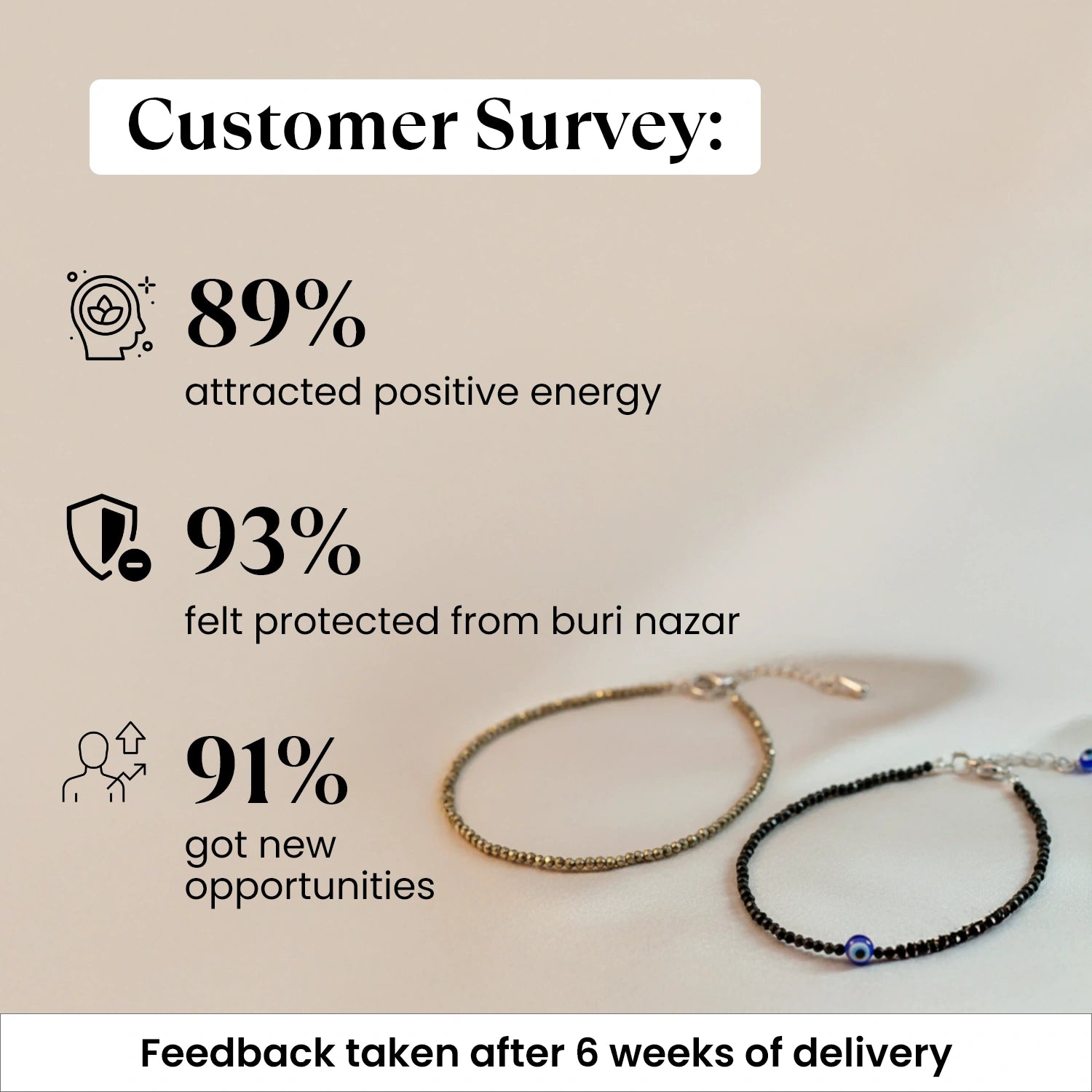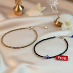 Get estimated delivery dateStep up your style and energy with this anklet combo designed for luck, protection, and confidence. The Pyrite Anklet is known as the “stone of prosperity,” attracting wealth, opportunities, and positive vibes wherever you go. The FREE Black Tourmaline Anklet with Evil Eye Charm acts as a personal shield, guarding you against negative energies and keeping your aura strong and balanced.