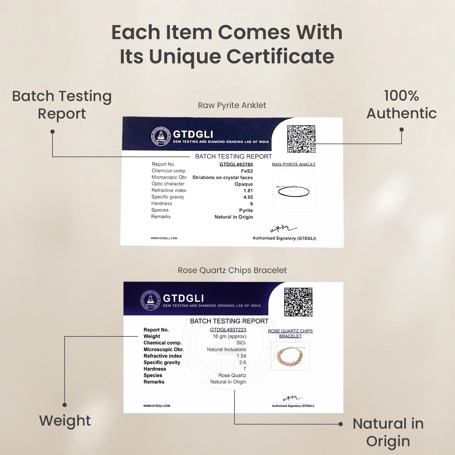 The Pyrite Anklet attracts wealth and protection while keeping you connected to the earth’s grounding energy. It is now paired with a FREE Rose Quartz Chips Bracelet, known for promoting emotional balance, self-love, and calm energy.