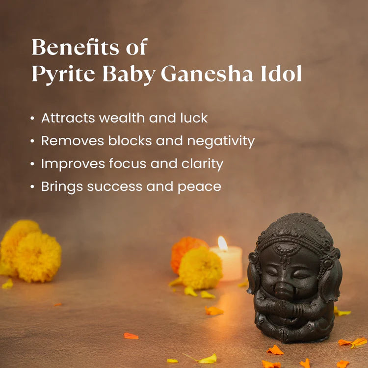 Pyrite Baby Ganesh Idol with FREE Lakshmi Ji Keychain