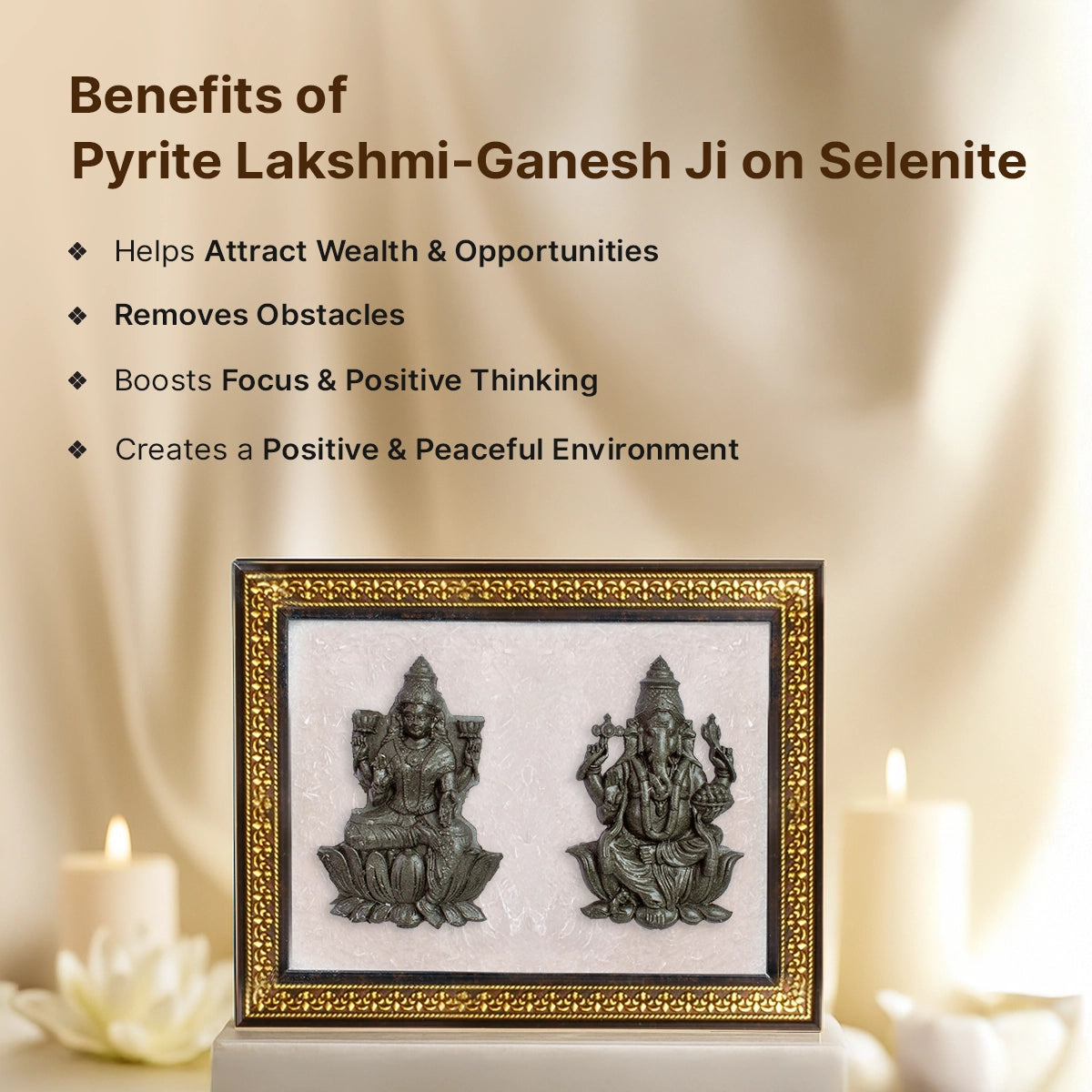 Pyrite Lakshmi - Ganesh Ji on Selenite Frame92% orders are delivered within 3 days