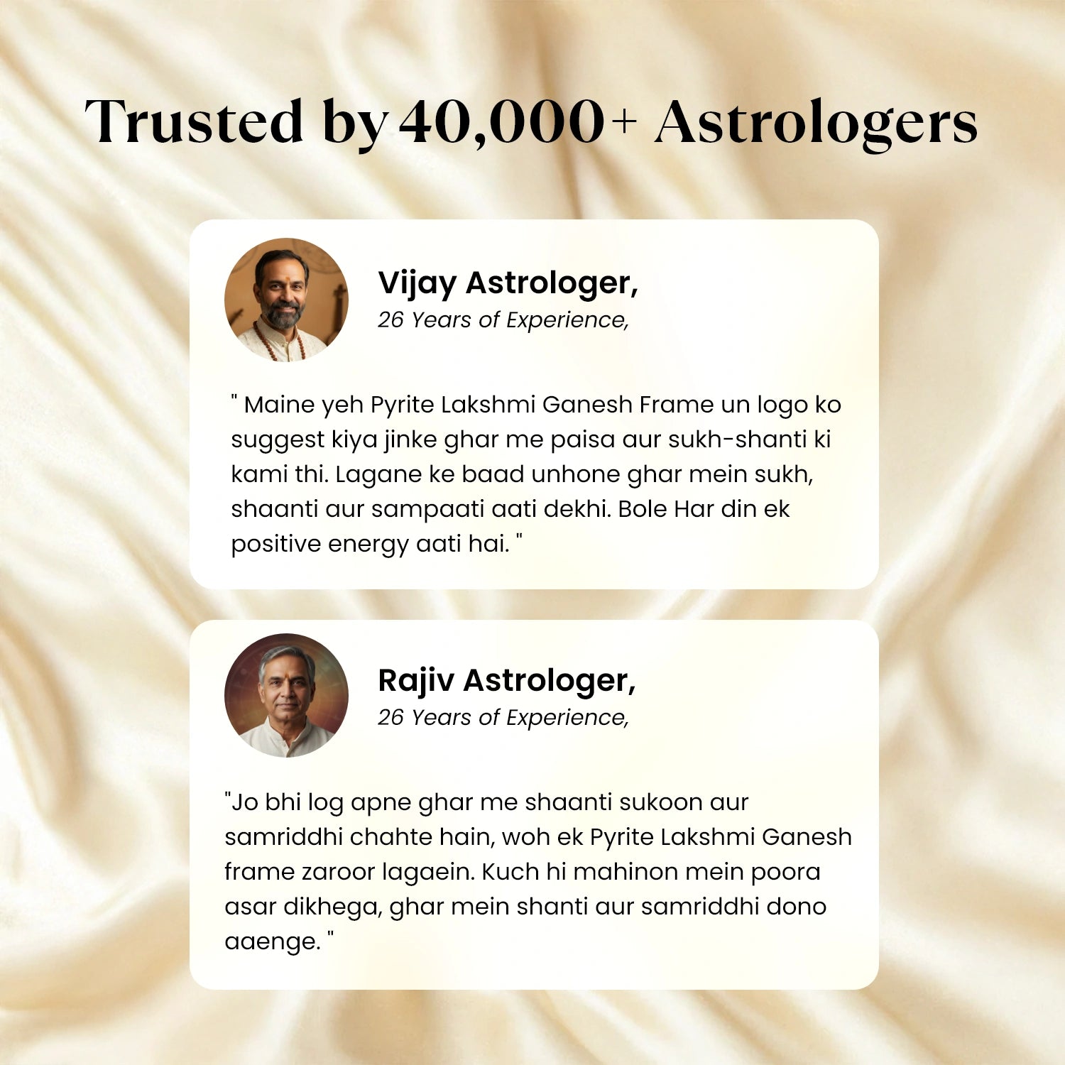 Get estimated delivery dateThe Pyrite Lakshmi - Ganesh Ji on Selenite Frame combines the blessings of Goddess Lakshmi and Lord Ganesha with the calming power of Selenite. Goddess Lakshmi brings wealth and prosperity, while Lord Ganesha removes obstacles and ensures success. Pyrite, known as the "stone of wealth," attracts money and positive energy. Selenite enhances peace and clears negative vibrations. Together, this frame creates a balanced and powerful charm for prosperity, success, and peace in your home or office.