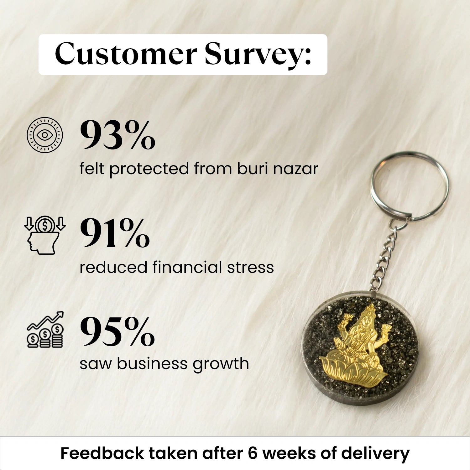 Get estimated delivery dateCarry the blessings of Goddess Lakshmi and the power of Pyrite with you wherever you go. This Lakshmi Ji Pyrite Keychain is more than just an accessory—it’s a symbol of wealth, good luck, and protection. Pyrite is known as the "stone of prosperity," while Maa Lakshmi is worshipped as the goddess of fortune and abundance. Together, they create a powerful charm that attracts money, removes negativity, and keeps you surrounded with positive energy. Whether attached to your home keys, car keys, or office bag, this key chain ensures that Lakshmi’s blessings are always with you.