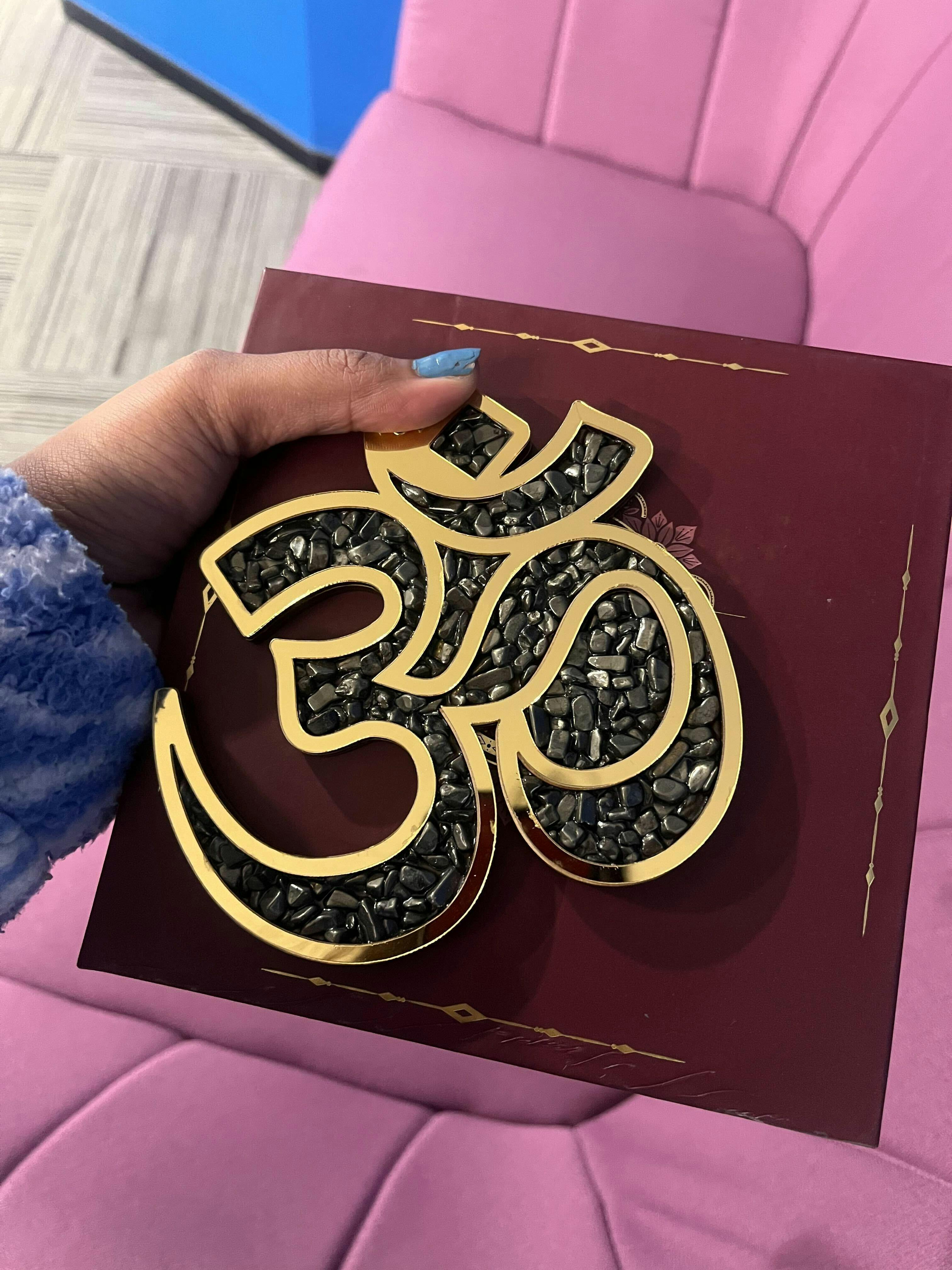Prepaid orders are delivered on priority.Pyrite Om is a beautiful decorative piece made from acrylic shaped like the sacred Om symbol. It is filled with natural pyrite stones, which are known as the "Stone of Wealth and Protection". The Om symbol represents peace and harmony. Together, the Om and Pyrite bring positive energy, bring good luck, and help clear your mind.