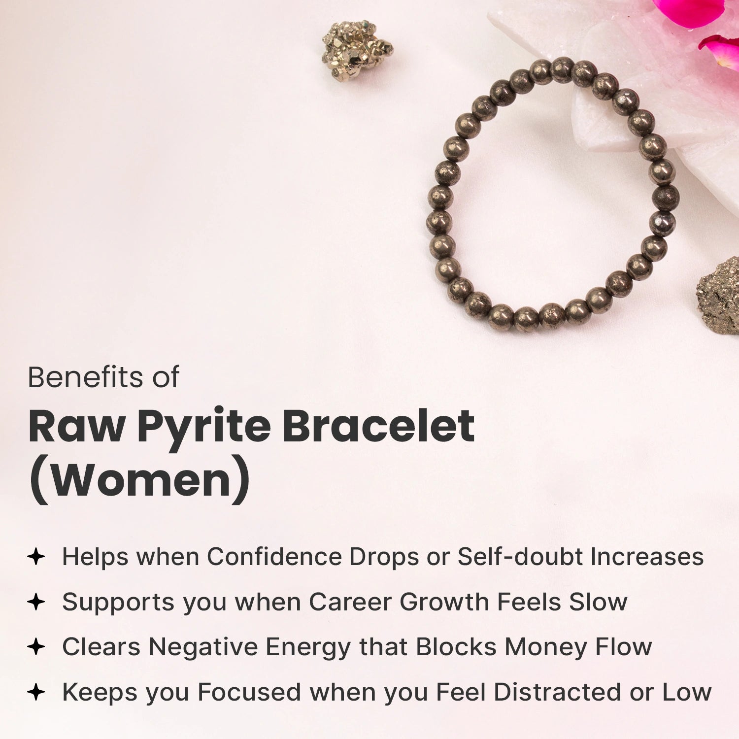 Raw Pyrite Bracelet For WomenThe Raw Pyrite Bracelet for women is a powerful and stylish bracelet made with natural pyrite stones. Pyrite is also called the “stone of wealth” because it attracts money, prosperity, and good luck. Wearing this bracelet helps women feel more confident, positive, and strong in daily life.