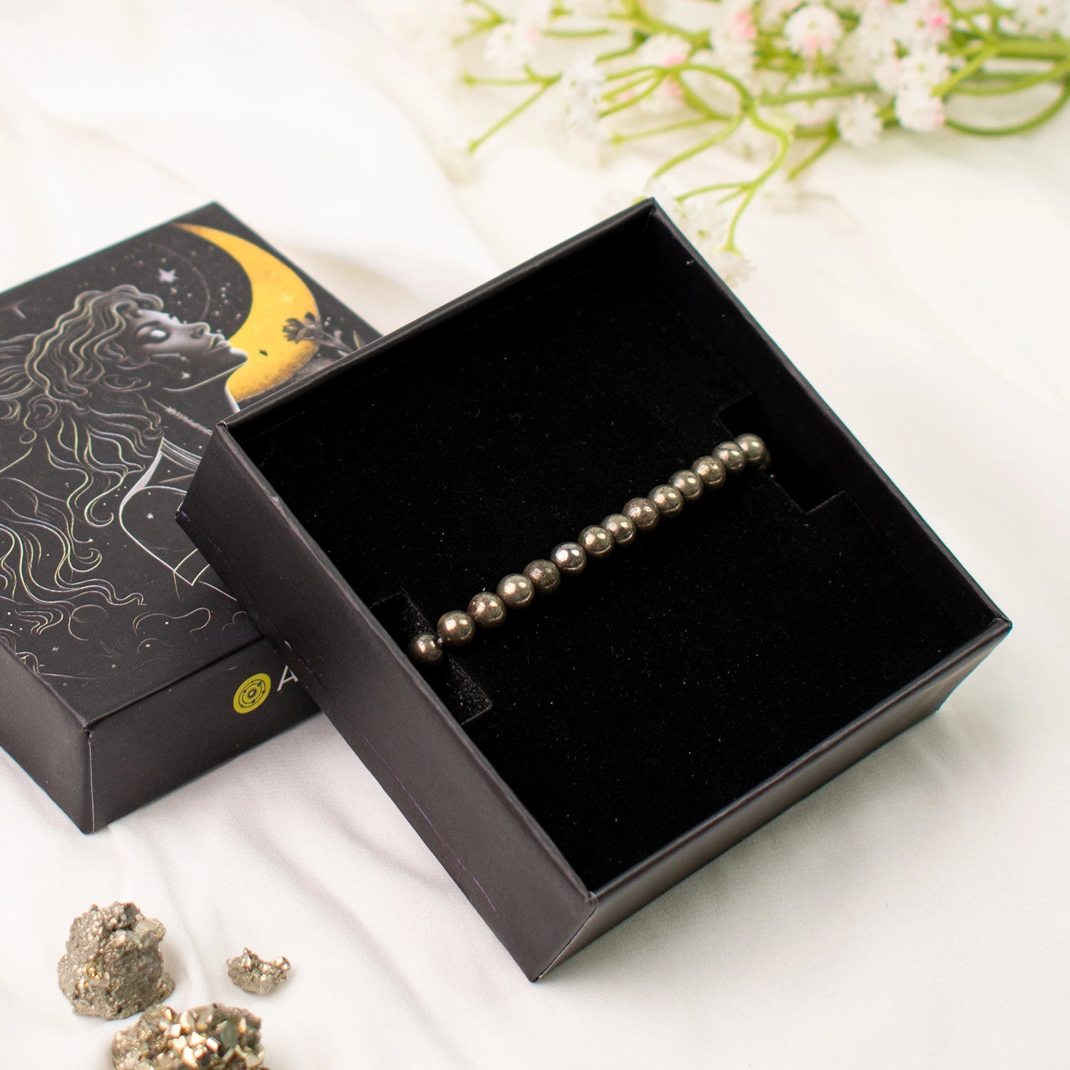 This bracelet is not only beautiful but also carries strong healing energy. It protects from negative vibes and boosts self-esteem. Pyrite is known to reduce stress, increase focus, and give the courage to face challenges. It also brings a sense of balance and motivation, which helps in both personal and professional life.