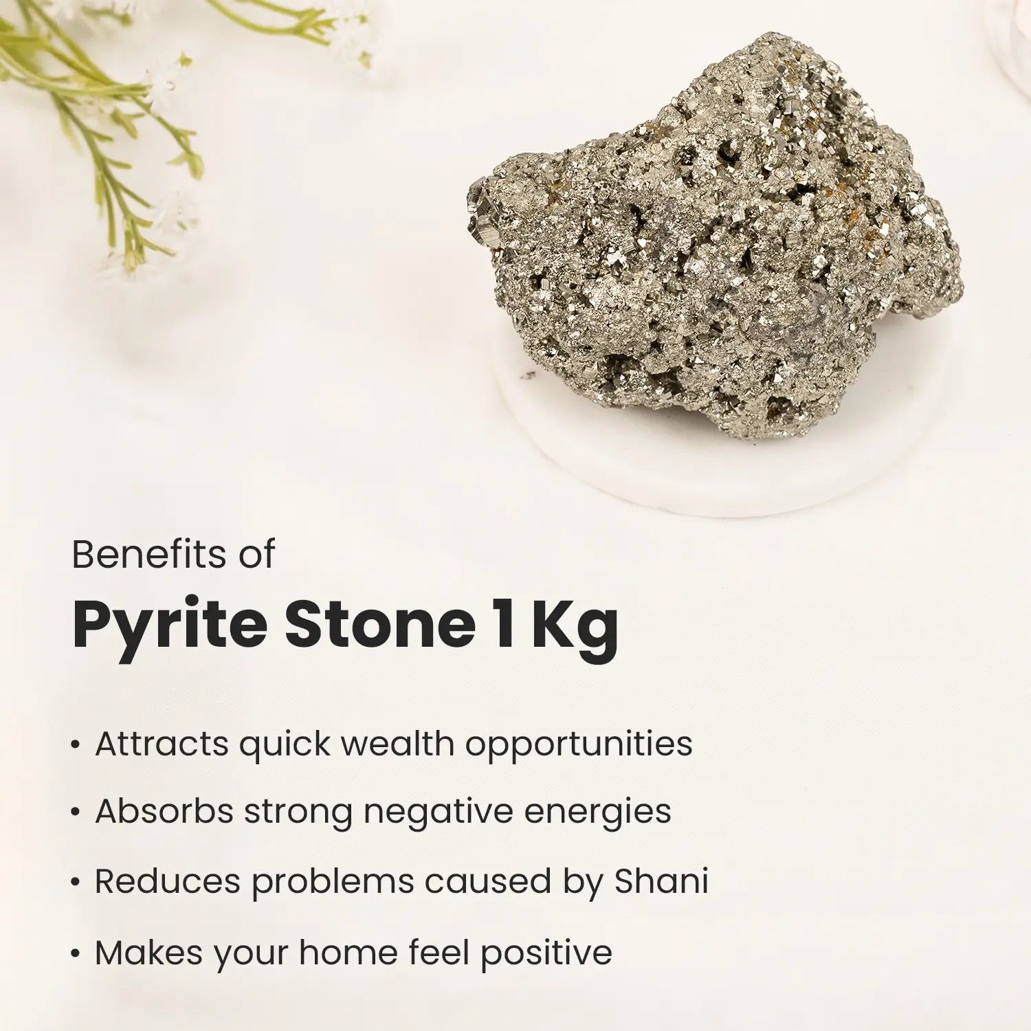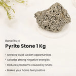 Raw Pyrite Stone 1kgThis 1 Kg stone is made of 100% natural raw Pyrite crystals, also called the Stone of Wealth and Abundance. It is known to attract money, success, and good luck, making it a powerful crystal for financial growth.