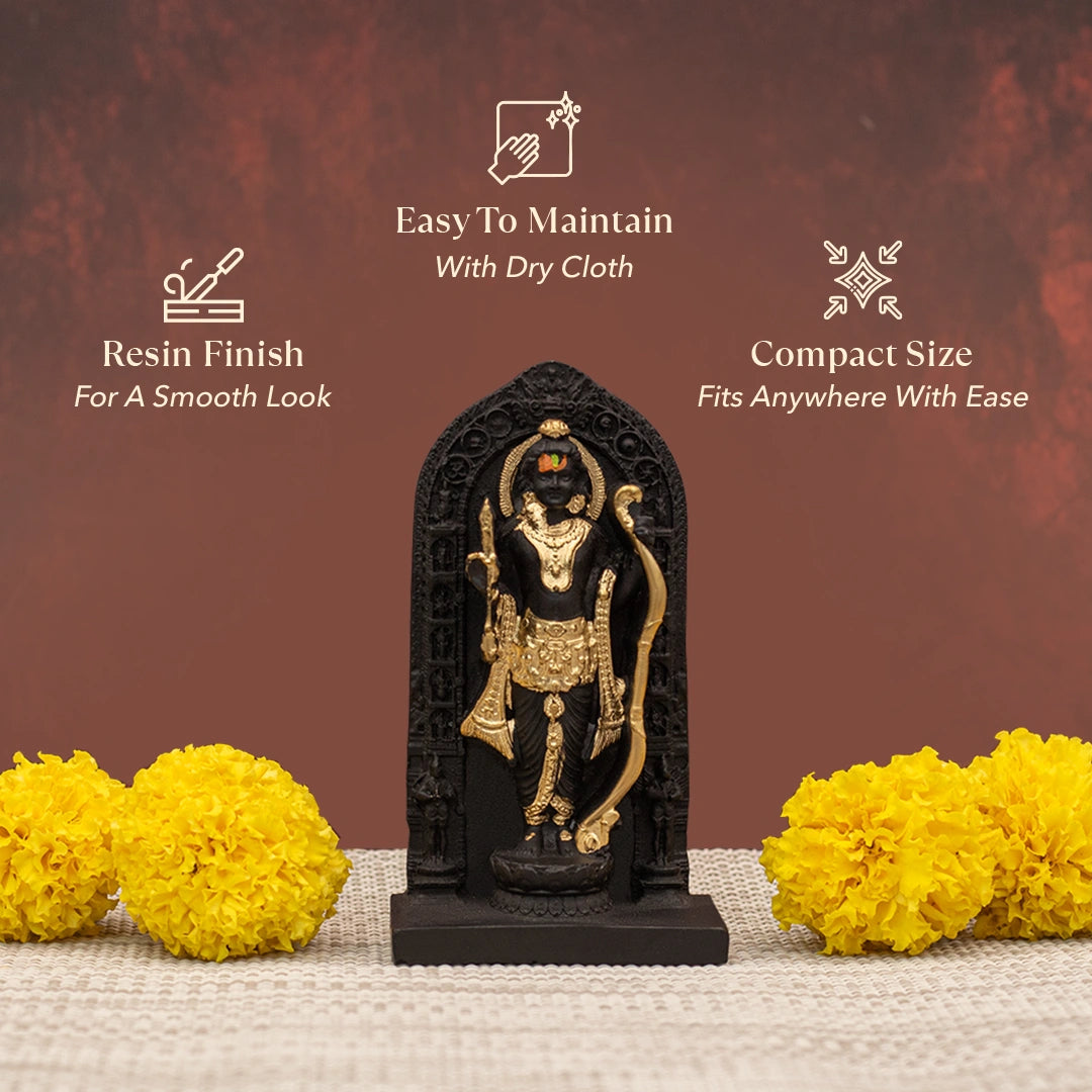 Shree Ramlala Murti - 10 cm with Ram KavachThe Resin Shree Ramlala Murti – 10 cm with Ram Kavach is a divine symbol of faith, purity, and protection. This beautifully crafted idol captures the innocent and blissful form of Bal Ram (Lord Rama as a child), radiating calmness and devotion. Accompanied by the sacred Ram Kavach, it acts as a spiritual shield that surrounds your home or workplace with divine energy. Placing this murti brings peace, courage, and blessings from Lord Ram, while removing negative influences and filling your space with positivity and grace .