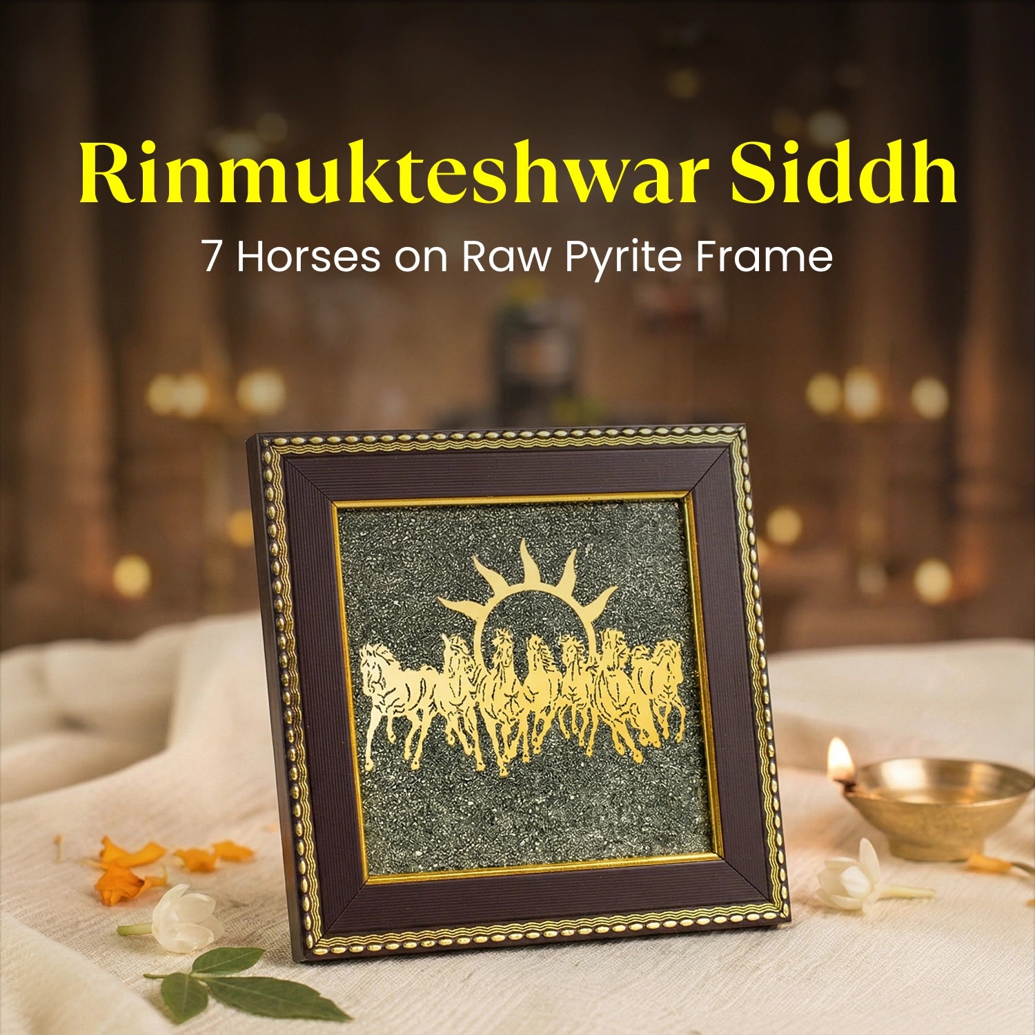 Prepaid orders are delivered on priority.Rinmukteshwar Siddh 7 Horses on Raw Pyrite Frame is a powerful Vastu piece for career growth, fame, and success. It is energized through a proper Siddhi ritual at Rinmukteshwar Mahadev Mandir, a sacred temple in Varanasi known for “Karz Mukti.” Here, Lord Shiva is worshipped as Mukteshwar, the one who frees devotees from financial stress, karmic burdens, and ancestral obstacles.