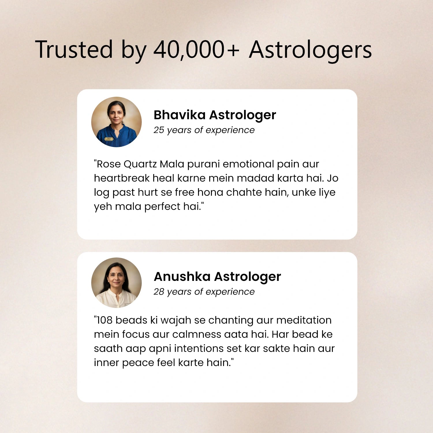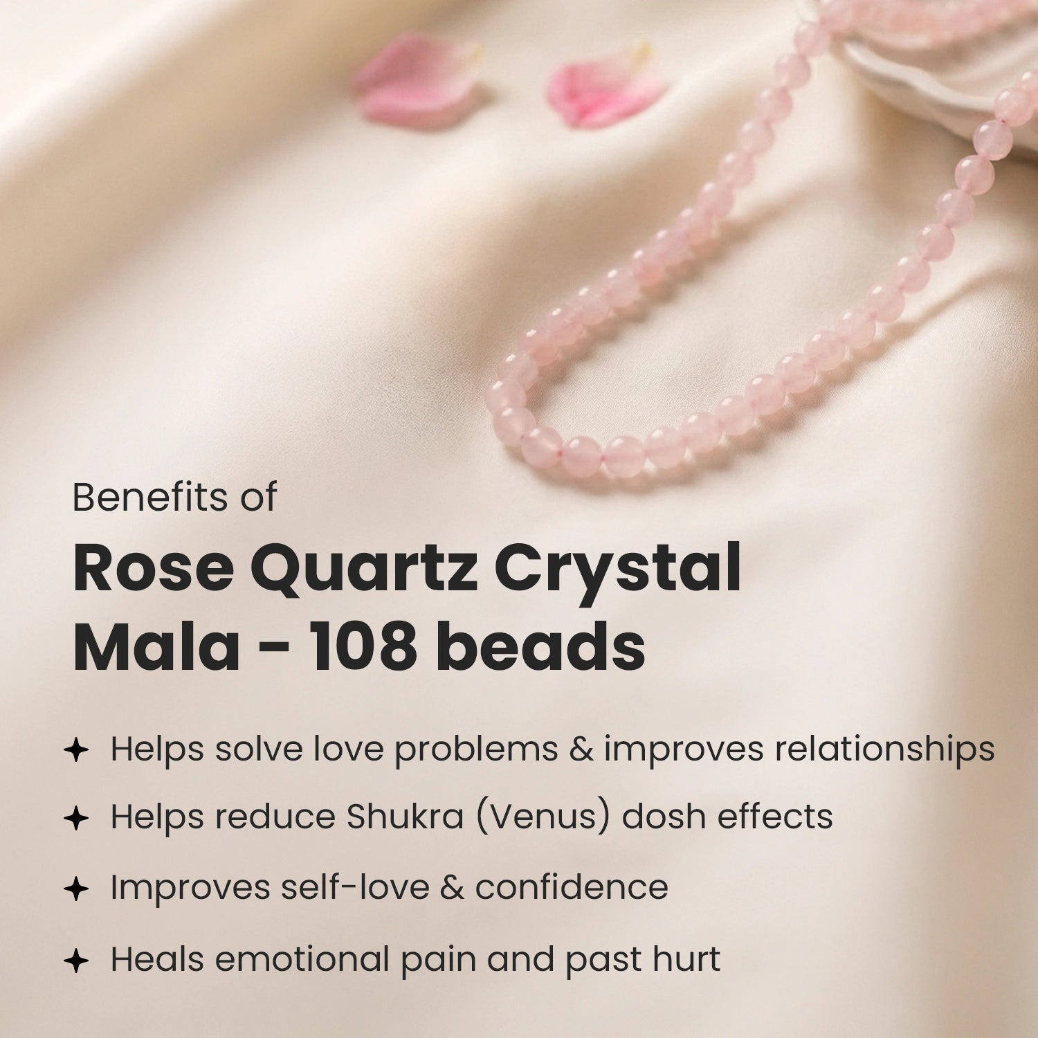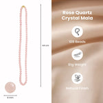 Prepaid orders are delivered on priority.This Rose Quartz Mala (8mm, 108 beads) is crafted from natural rose quartz, also known as the “Stone of Love,” renowned for its ability to bring love, peace & emotional healing.
