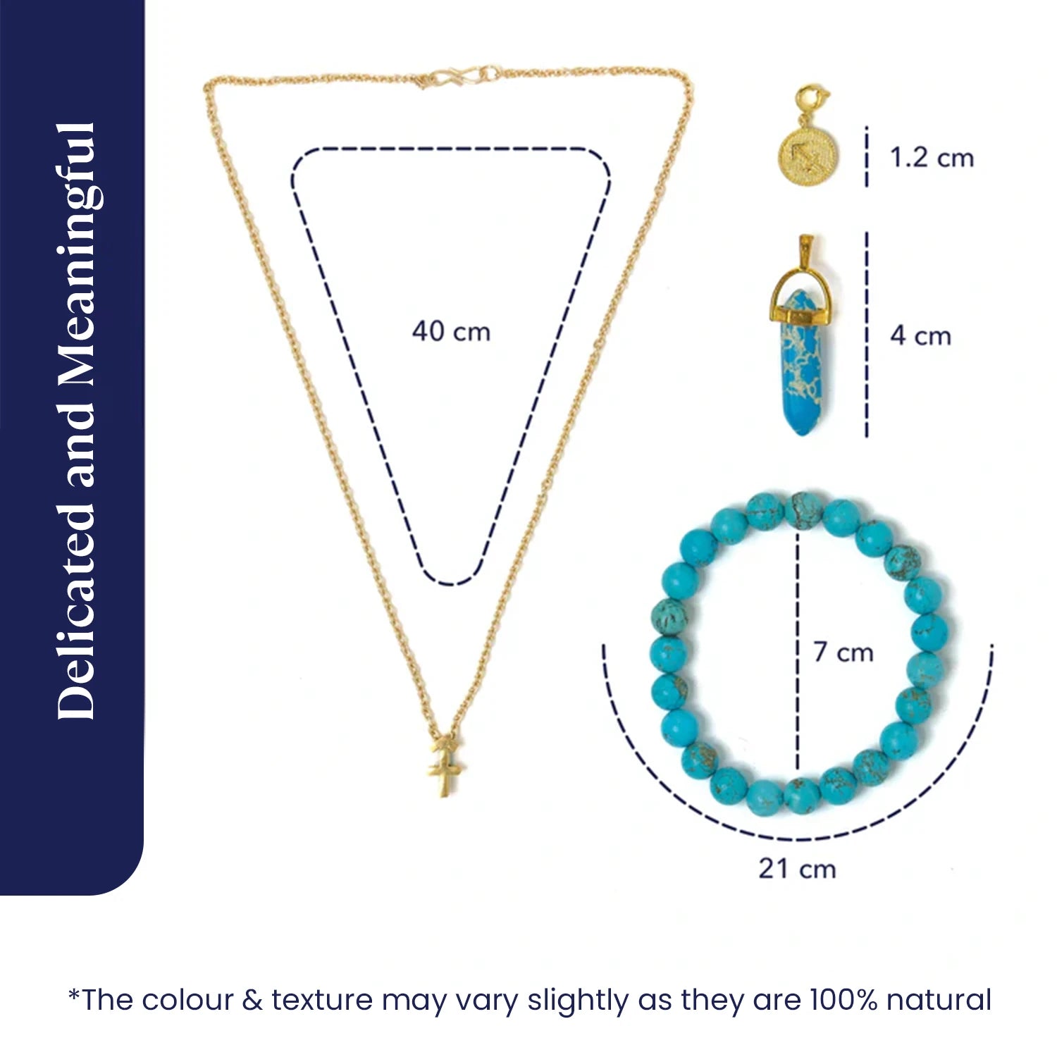 Turquoise Crystal Jewellery Box (Dhanu Rashi) Sagittarius ₹999The Sagittarius Turquoise Crystal Set is made for people born under the Dhanu Rashi (Sagittarius). Sagittarians are full of energy, love to explore new things, and always look for truth and meaning in life. But sometimes, they can feel restless or lose focus. This crystal set helps them stay calm, lucky, and balanced.