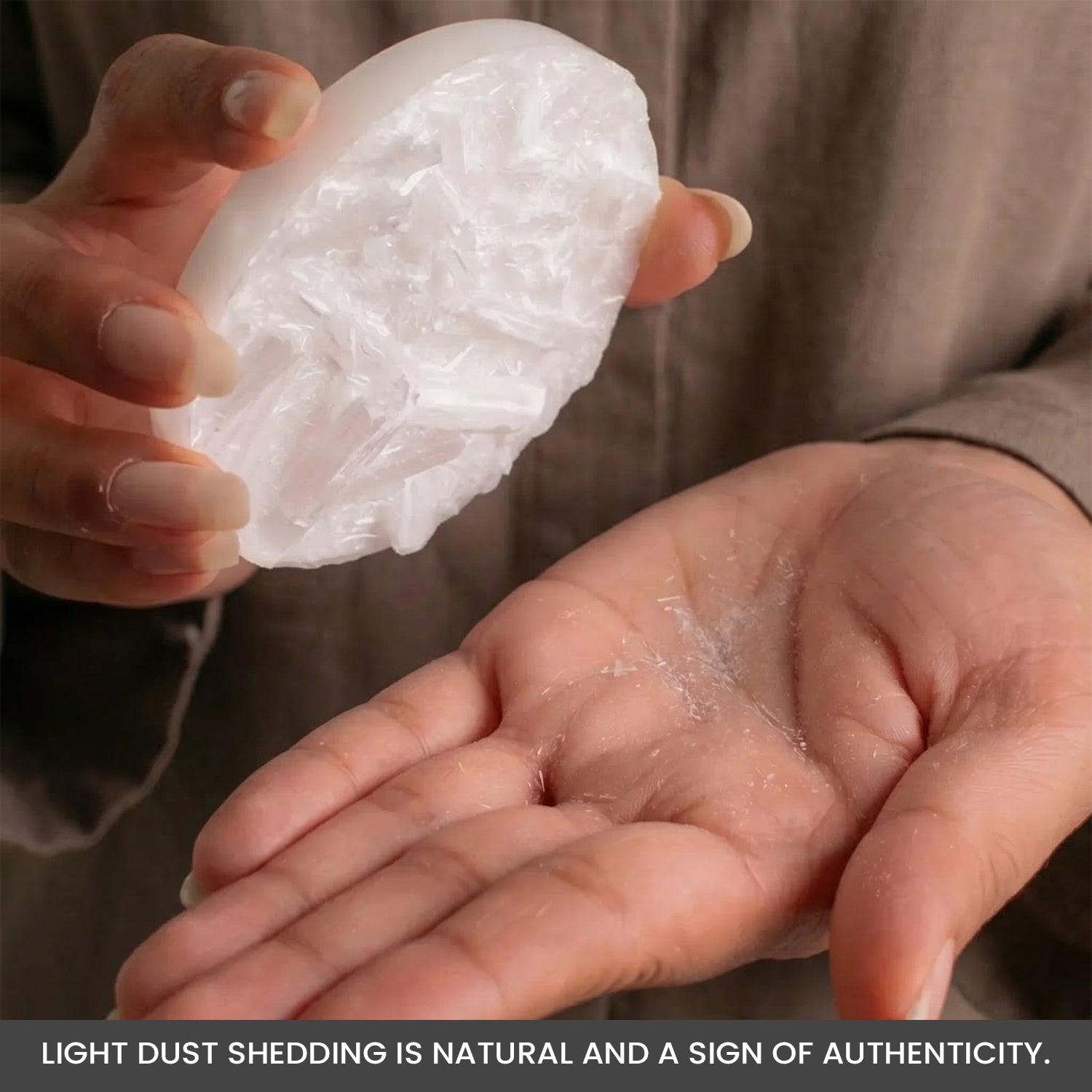 Original Raw Selenite has a delicate, fibrous texture and may shed light dust or powder. This natural shedding is normal and a key sign of authenticity and strong cleansing energy.