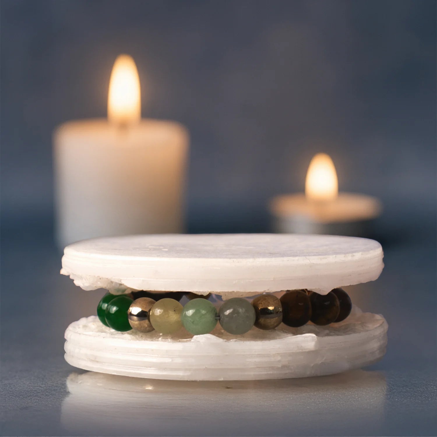 Crystals absorb energy, both good and bad, and can dull over time. That’s why this combo includes two Raw Selenite Charging Plates to recharge your bracelet from both sides, giving it 20x energy-cleansing power. Just place your bracelet between them overnight for a complete energetic reset. No smoke, no sprays, just pure, natural recharging.