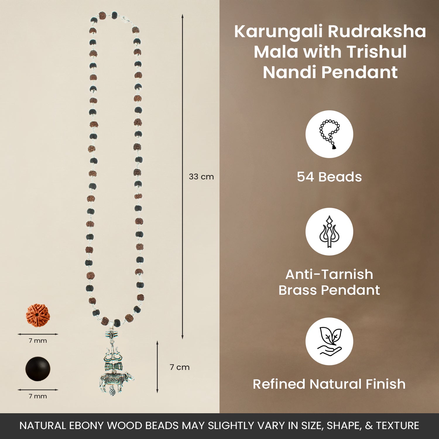 Shiv Raksha Karungali Rudraksha Mala with Trishul Nandi Pendant