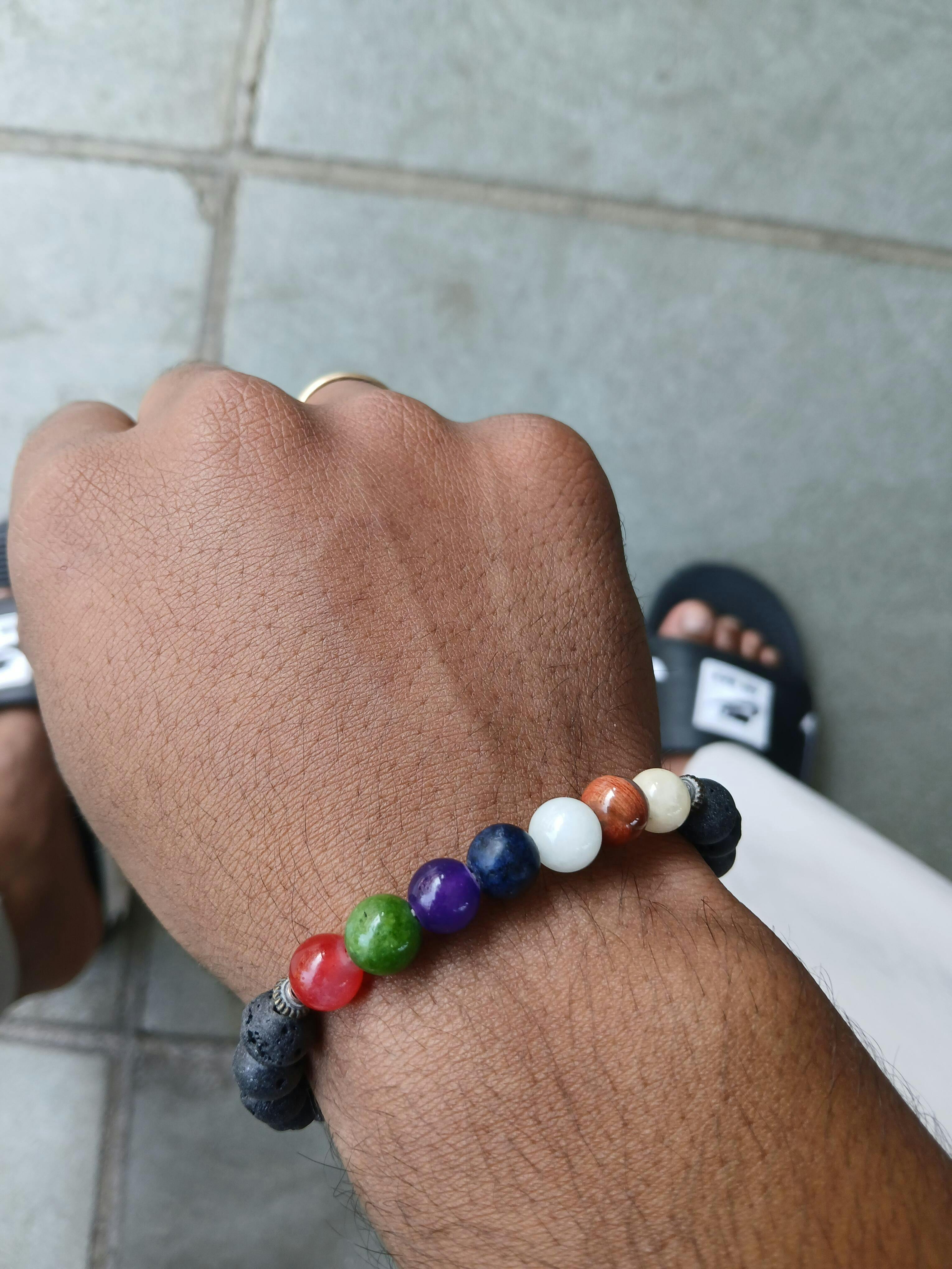 Prepaid orders are delivered on priority.Attract fame and power, balance your chakras, and improve health and energy . This bracelet combines seven chakra with the focusing and calming energy of Lava beads.