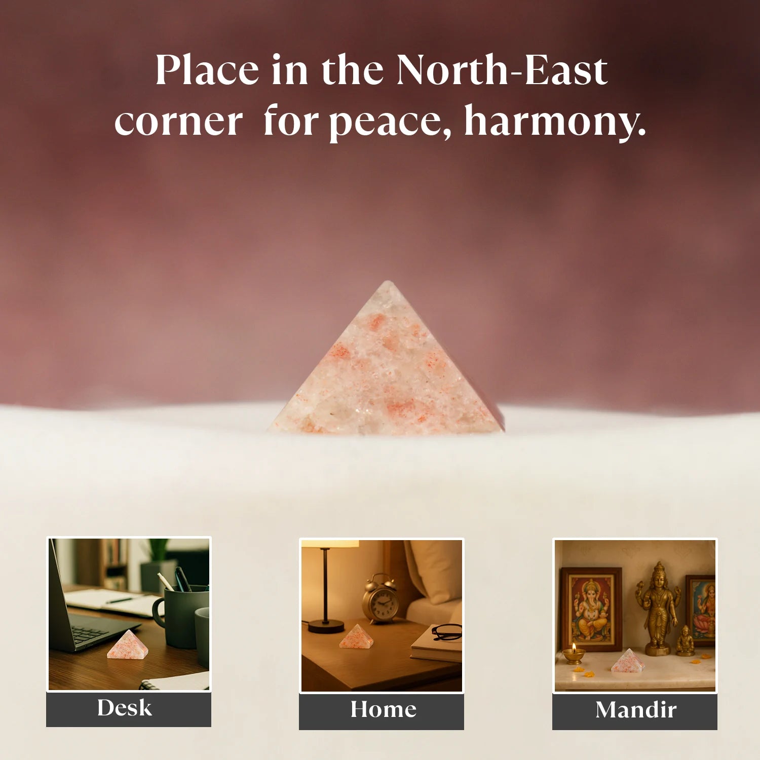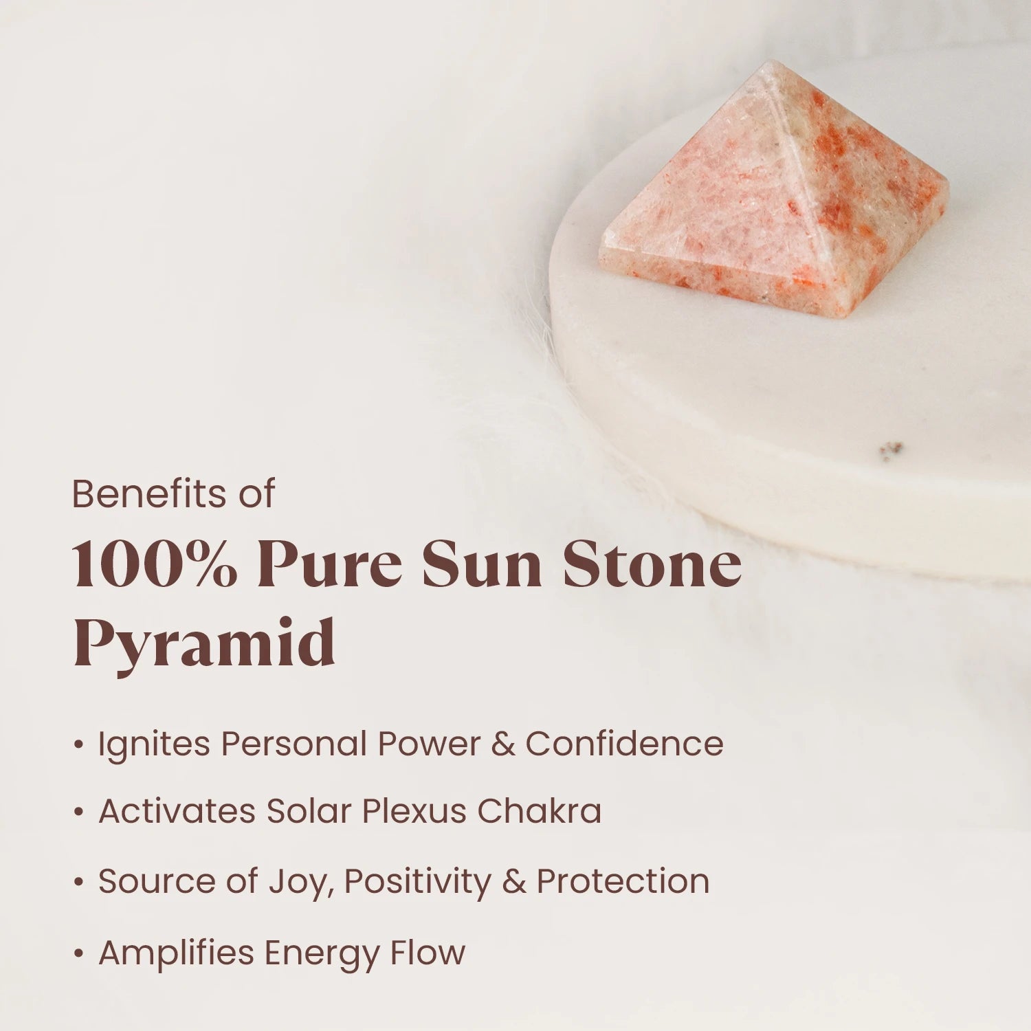 Sun Stone Pyramid | ₹699This Sunstone Pyramid radiates warmth and positive energy, just like the sun. Its believed to boost your confidence, creativity, and joy, while also helping to dispel negativity and fear.