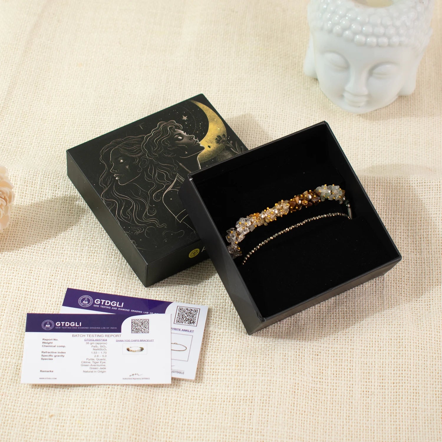 Raw Pyrite Anklet + Dhan Yog Chips Bracelet