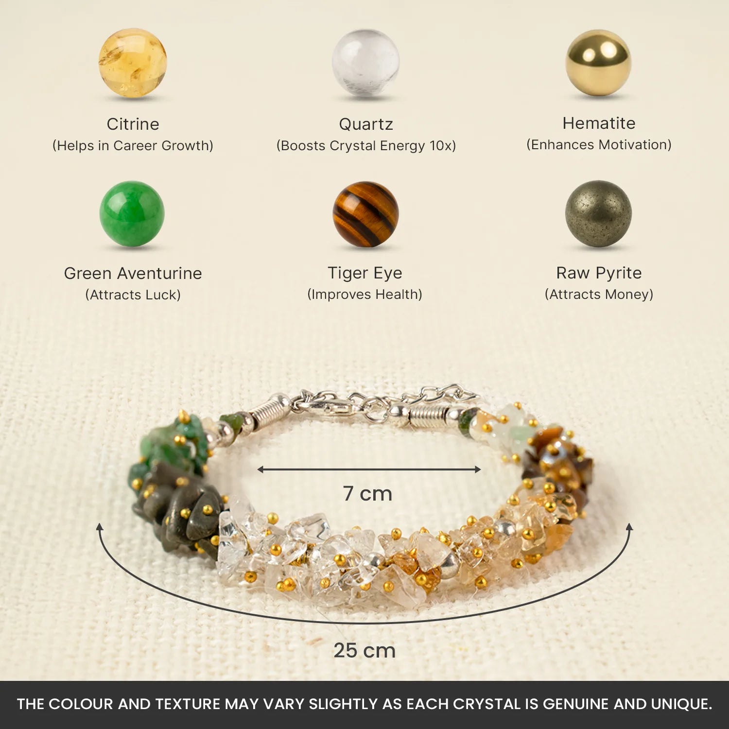 𝗕𝗿𝗮𝗰𝗲𝗹𝗲𝘁 – The bracelet has an 𝟳 𝗰𝗺 diameter and a circumference of 𝟮𝟱𝗰𝗺, with an 𝗮𝗱𝗷𝘂𝘀𝘁𝗮𝗯𝗹𝗲 𝗵𝗼𝗼𝗸 for a comfortable fit.
